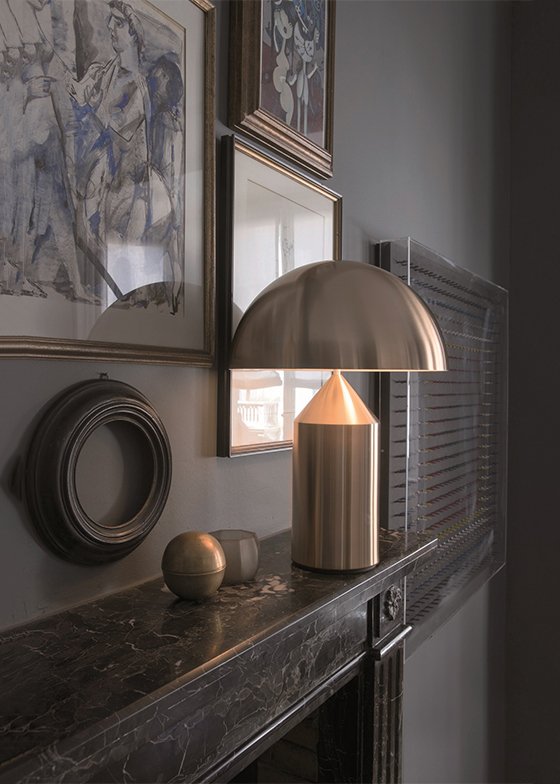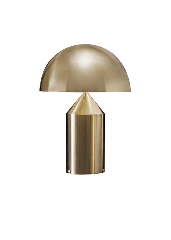 Designed in 1977 by Vico Magistretti, over the years, Atollo has become the archetype of the table lamp, winning the Compasso d’Oro in 1979 and completely revolutionising the way we imagine the classic bedside lamp. The geometric shapes that compose it – cylinder, cone and hemisphere – have resulted in a product that is decorative and essential at the same time, disconnected from the historical period and the fashions of the moment, and one that has now fully become one of the icons of Italian design. Atollo is available in three different sizes and in different finishes: gold, white or black metal, satin bronze metal or opal glass.