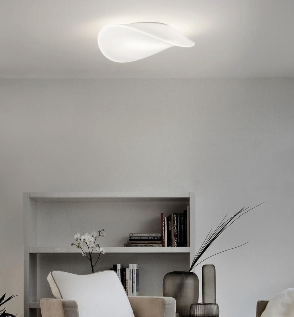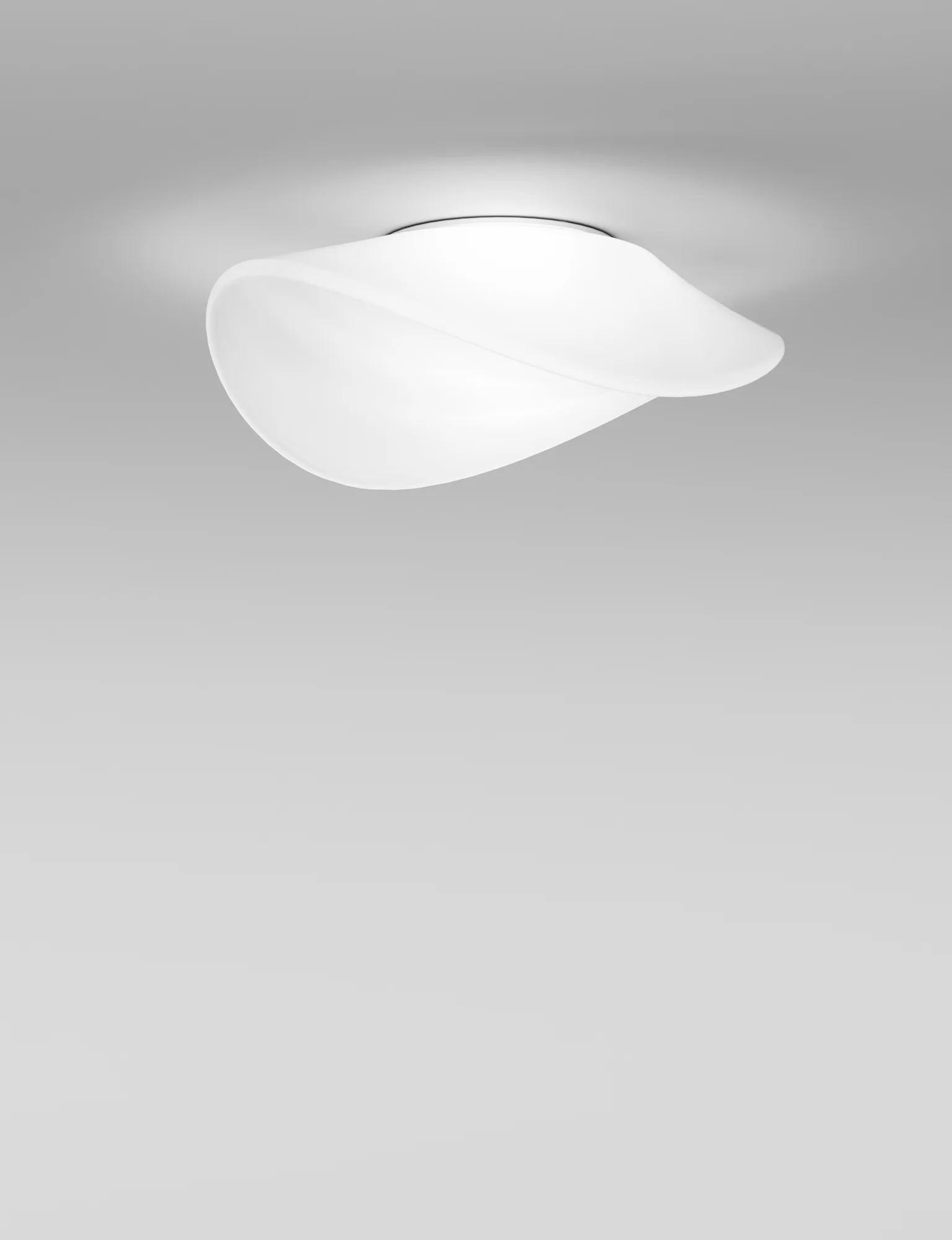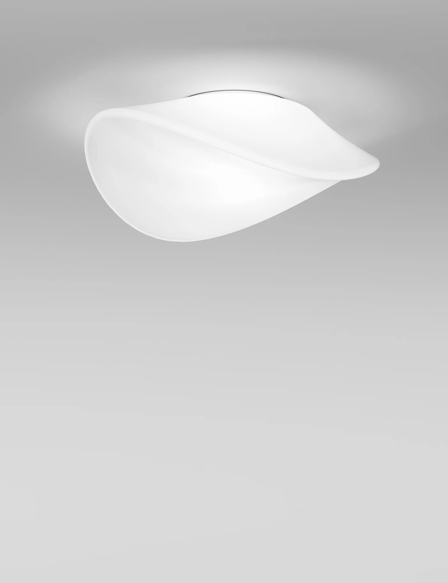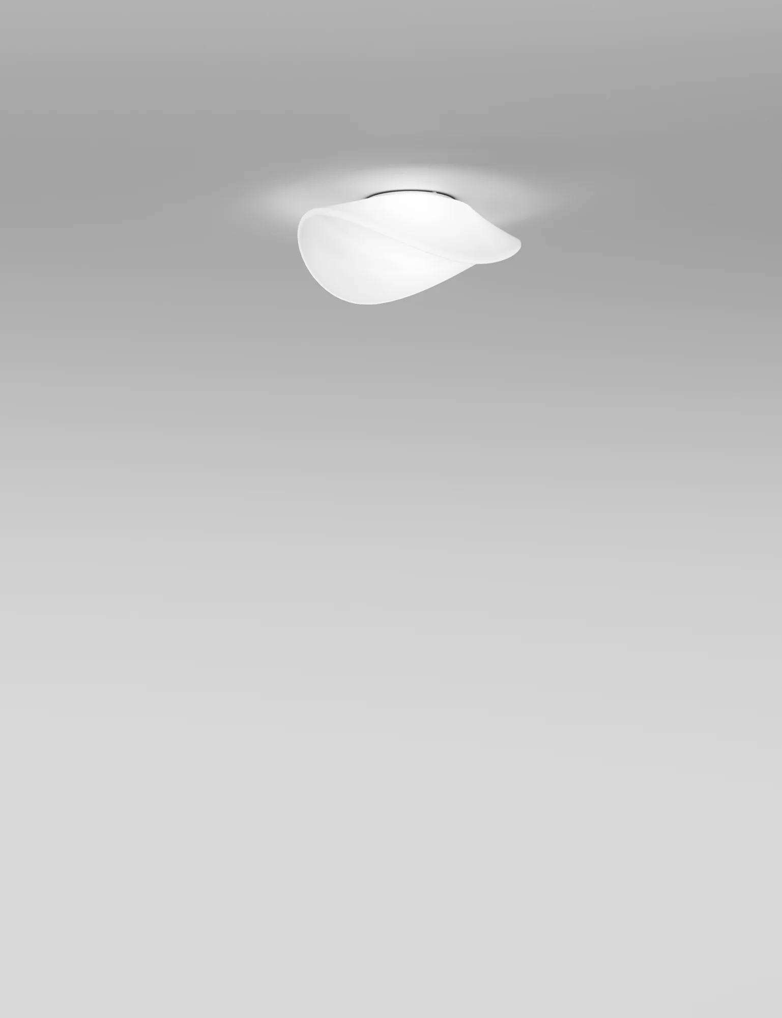 Inspired by the elliptic orbit of a planet around the sun, a motion that is created by the harmony and balance of unseen forces represented with the glass and the light. Available in three dimensions as suspension and ceiling.