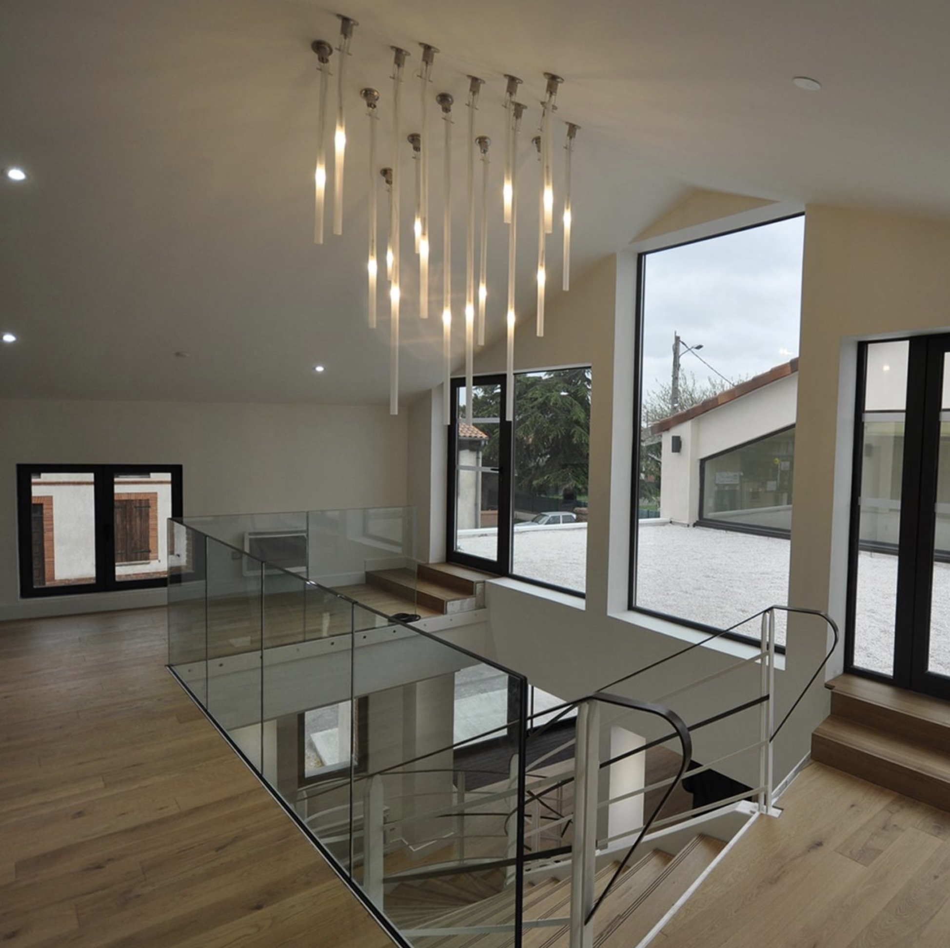 Canna Nuda is a project that explores the diffusion of light through the use of cylinders in the sandblasted glass version, the spot lighting in the metal one, and the orientation in the ceiling variant. A collection that represents a synthesis between harmonious forms and versatile use.
