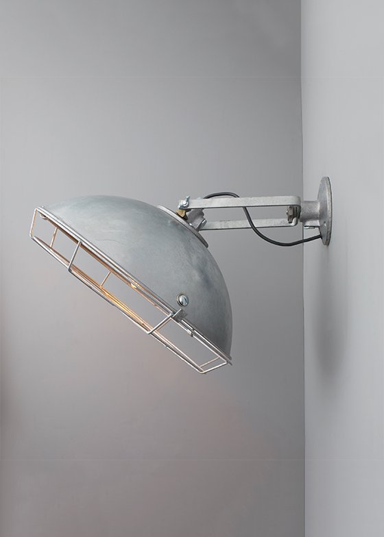 The Cargo Cluster Light is a robust, industrial style wall light. Beautifully manufactured from galvanized steel and finished with a protective galvanized guard. The light has a single central lampholder.
