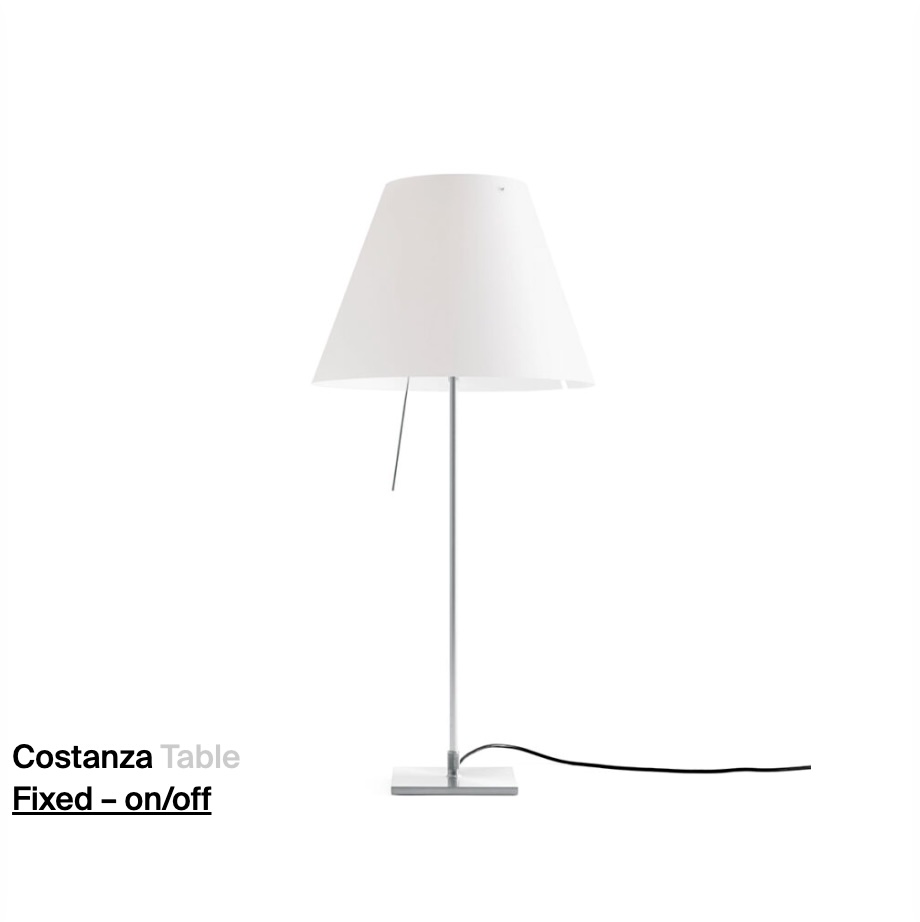 Blending tradition and technology, Costanza reinterprets a classic image in a contemporary way. The interchangeable polycarbonate lampshade emits warm, pleasant light. The sensorial dimmer rod turns the lamp on and off, alternating four light intensity levels.