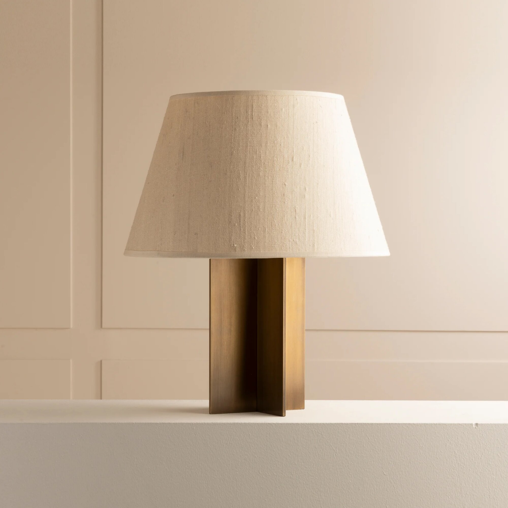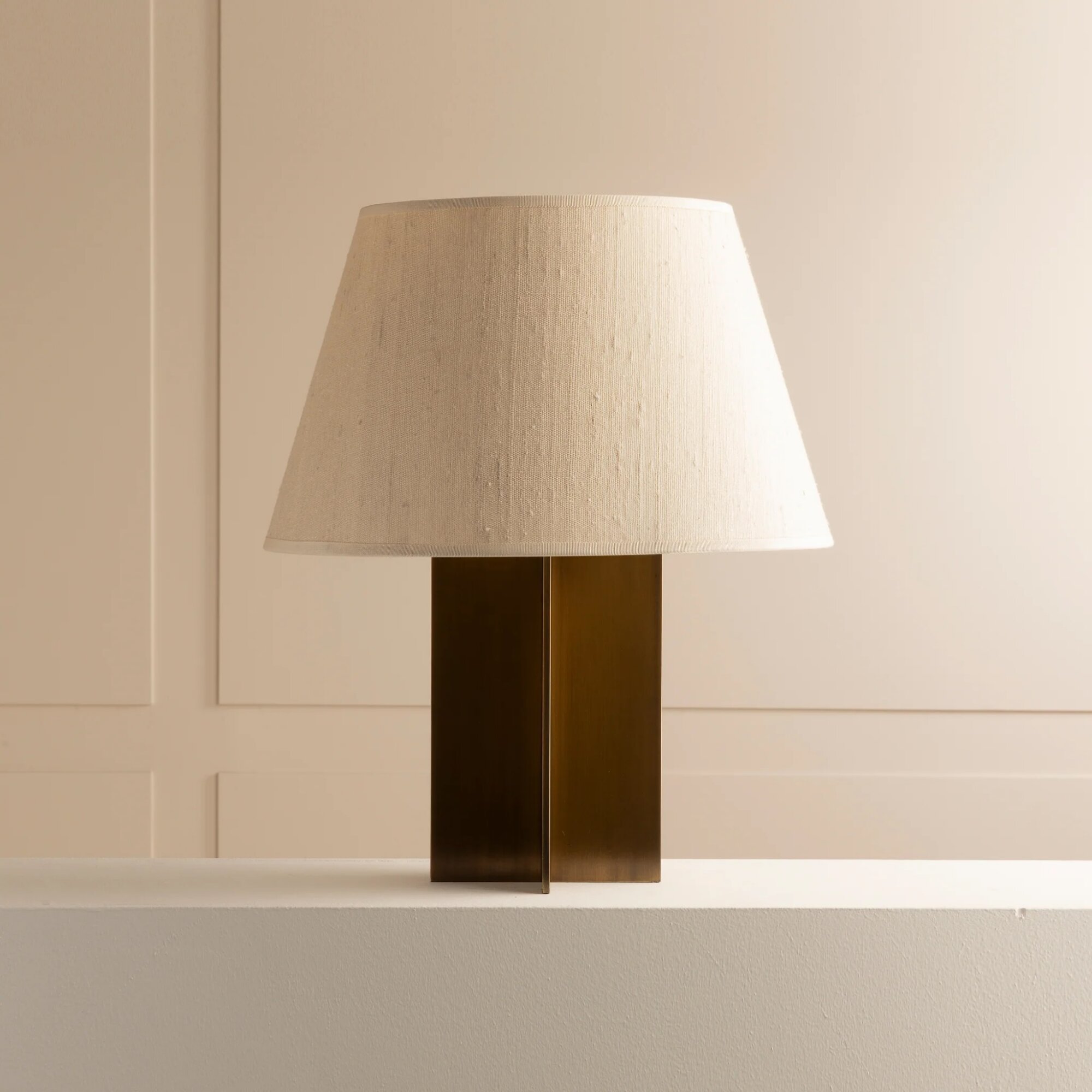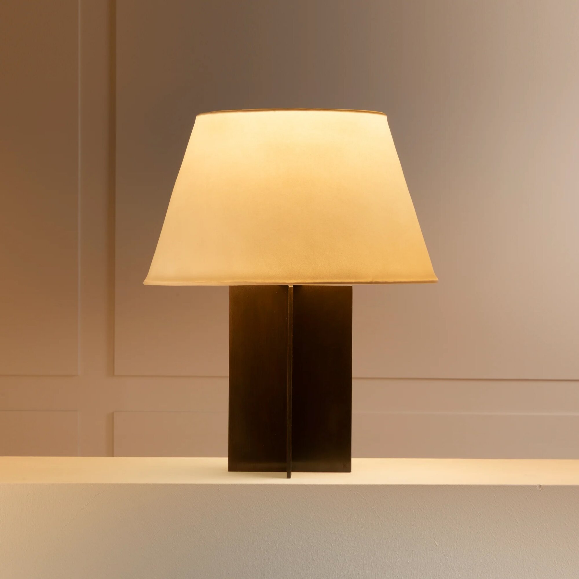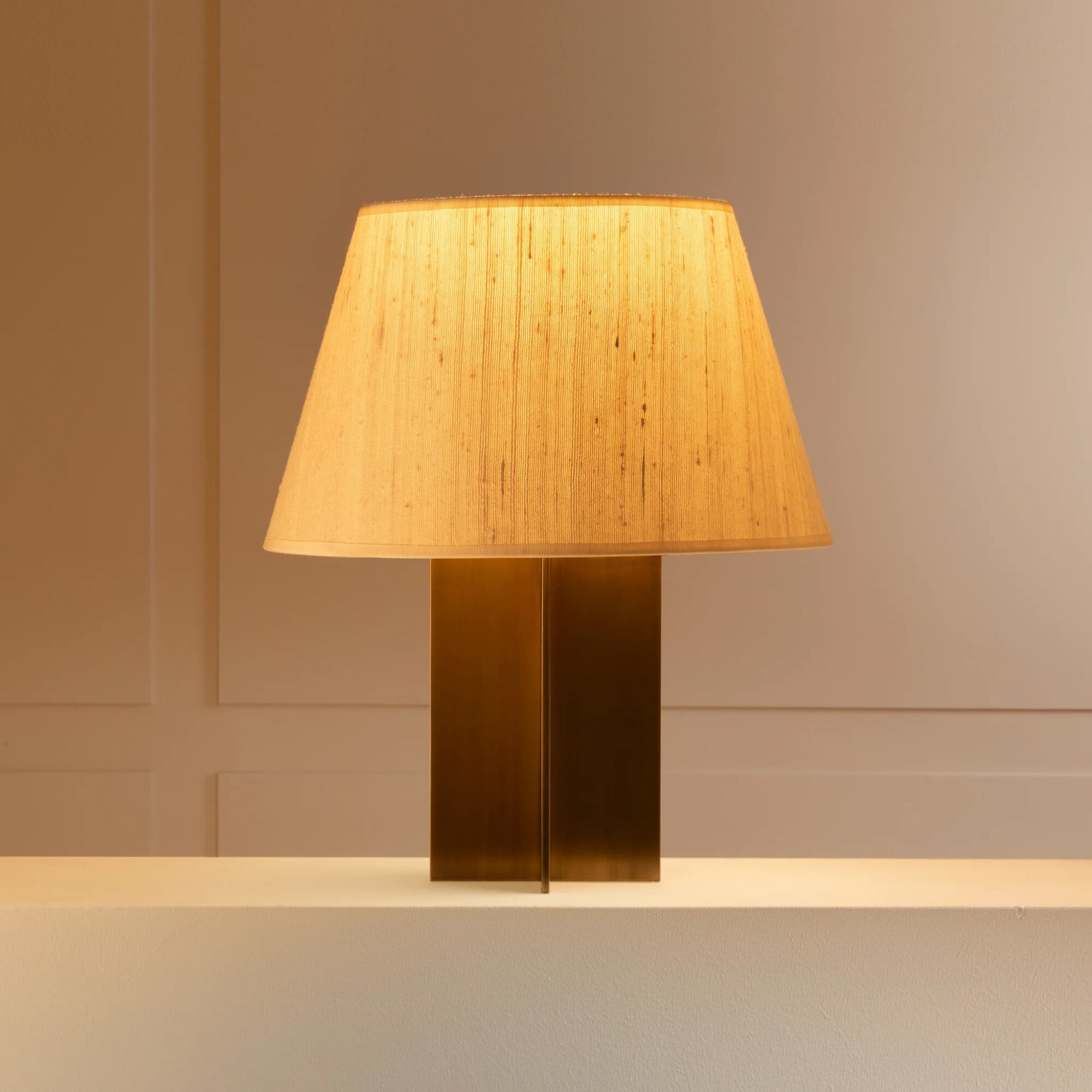 Patinated brass & cotton, silk or parchment.