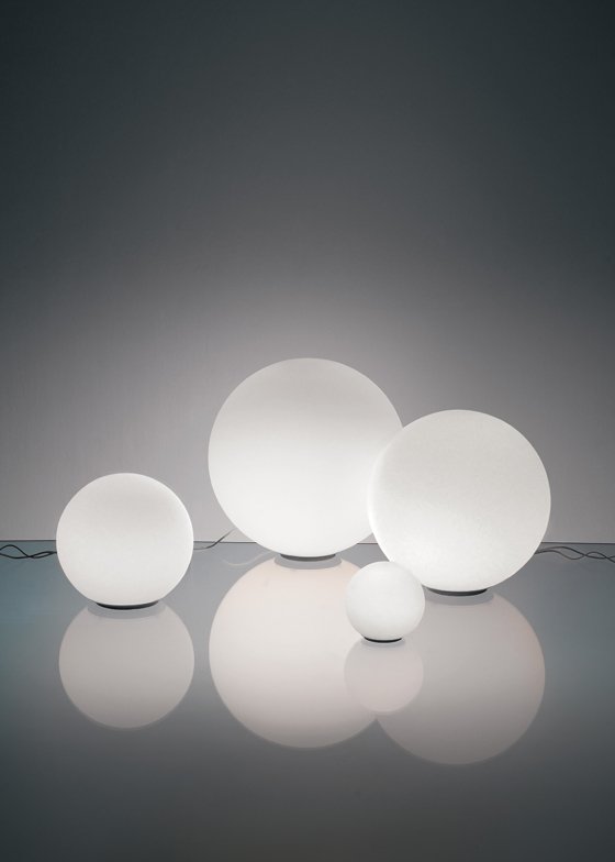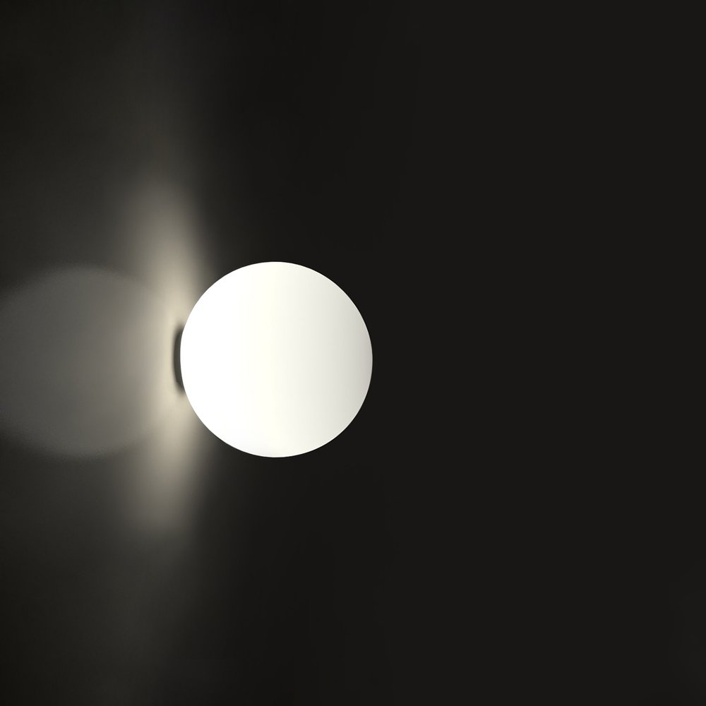 Dioscuri Wall or Ceiling Light designed by Michele De Lucchi for Artemide. A globe-like diffuser of acid-etched blown glass atop a thermoplastic base. Dioscuri is available in 4 sizes which are all dimmable aside from the smallest. A multiple design-award winner, the luminaire is offered in table, wall and ceiling versions. Outdoor options available upon request.