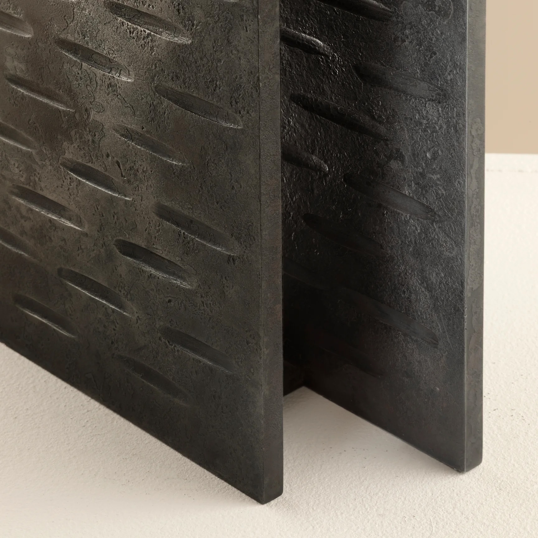 - Waxed wrought iron, patinated brass and cotton, silk or parchment.