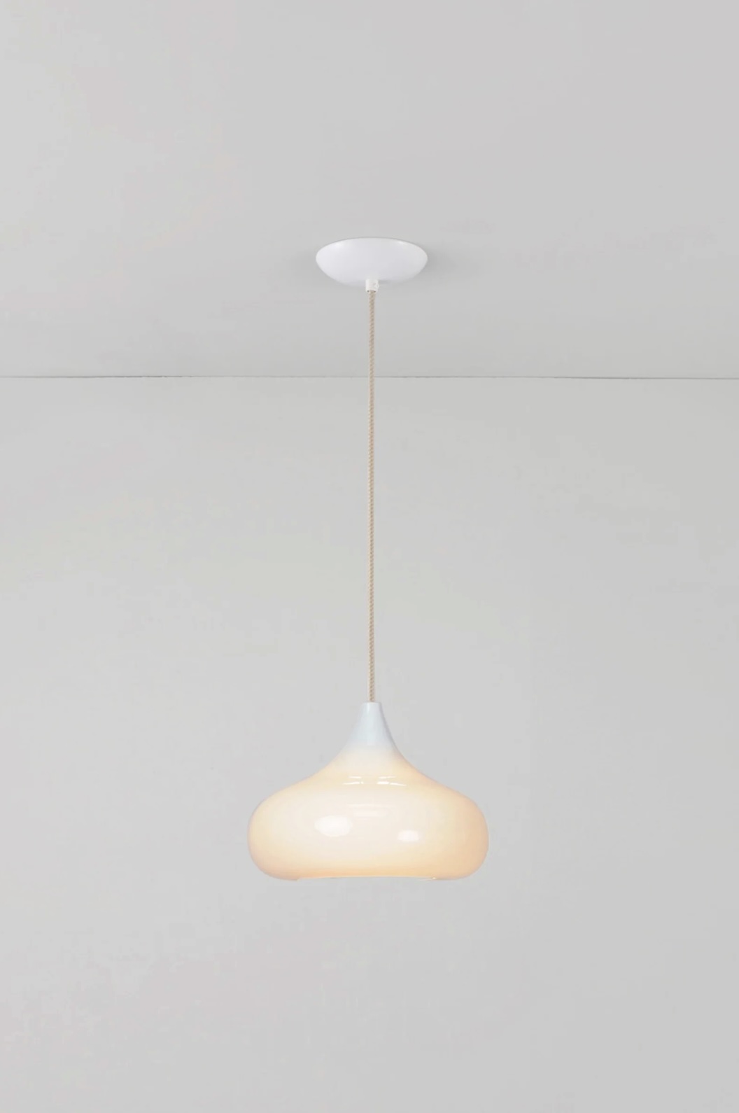 The Drop Two Pendant has a unique curved shade, handmade from bone china, that provides an elegantly simple central lighting source. Available in a matt or gloss finish.