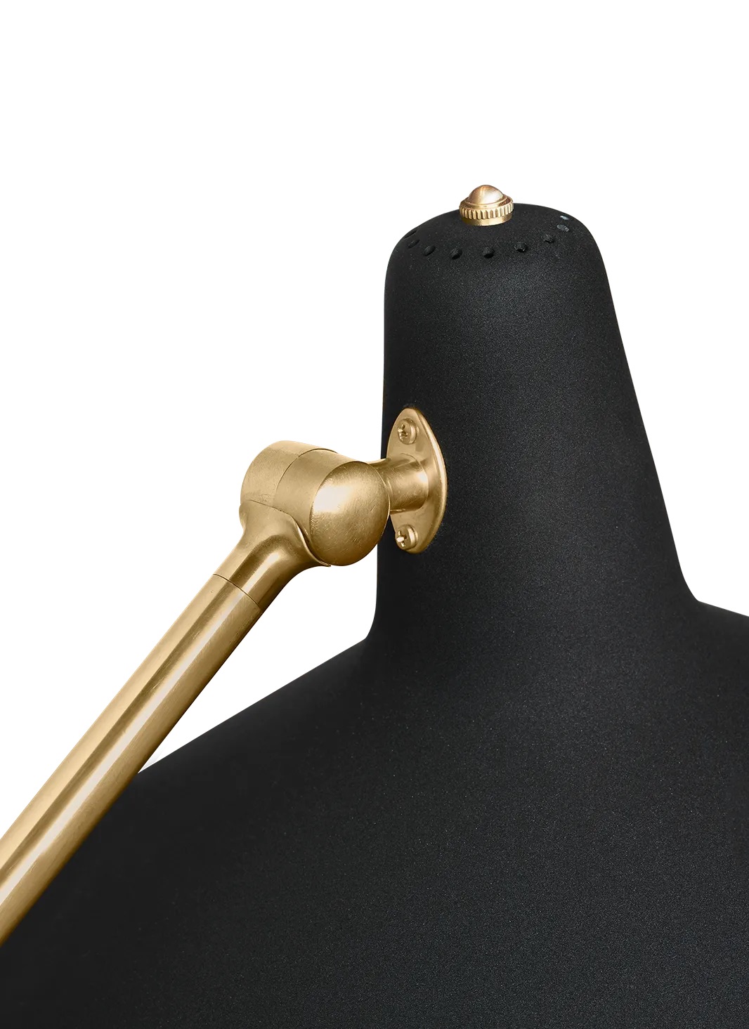 Greta M. Grossman envisioned the G‑10 Floor Lamp as her tenth design for the Swedish manufacturer Bergboms, hence its name. She combined industrial character with sculptural elegance through a wide conical shade with a textured, powder-coated surface and polished brass accents. Today, GUBI honors her craftsmanship by producing the G‑10 with the same attention to material detail and refined engineering.