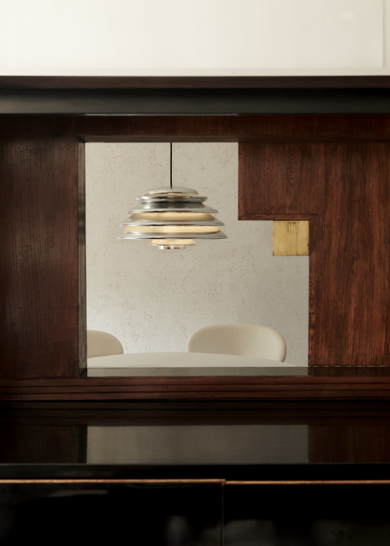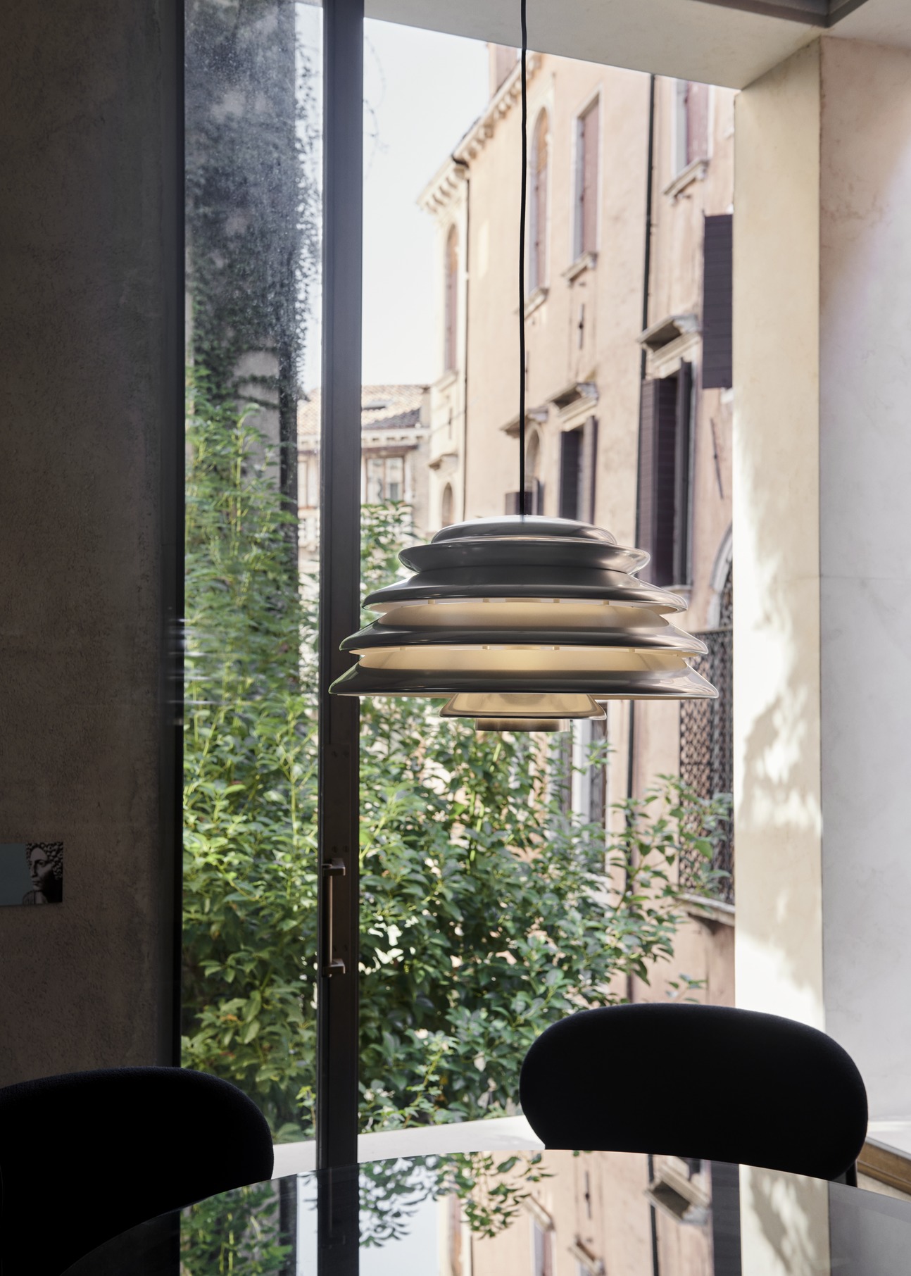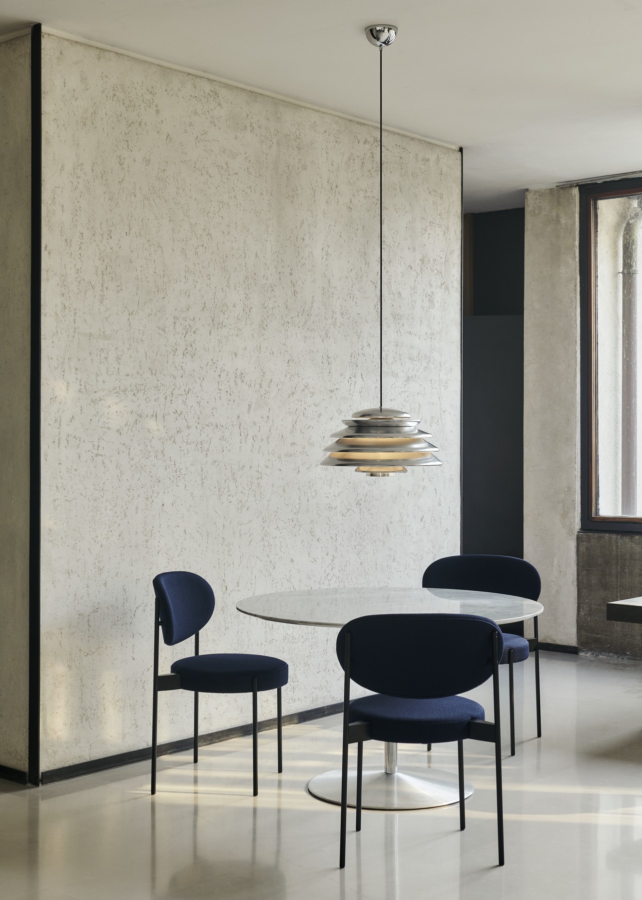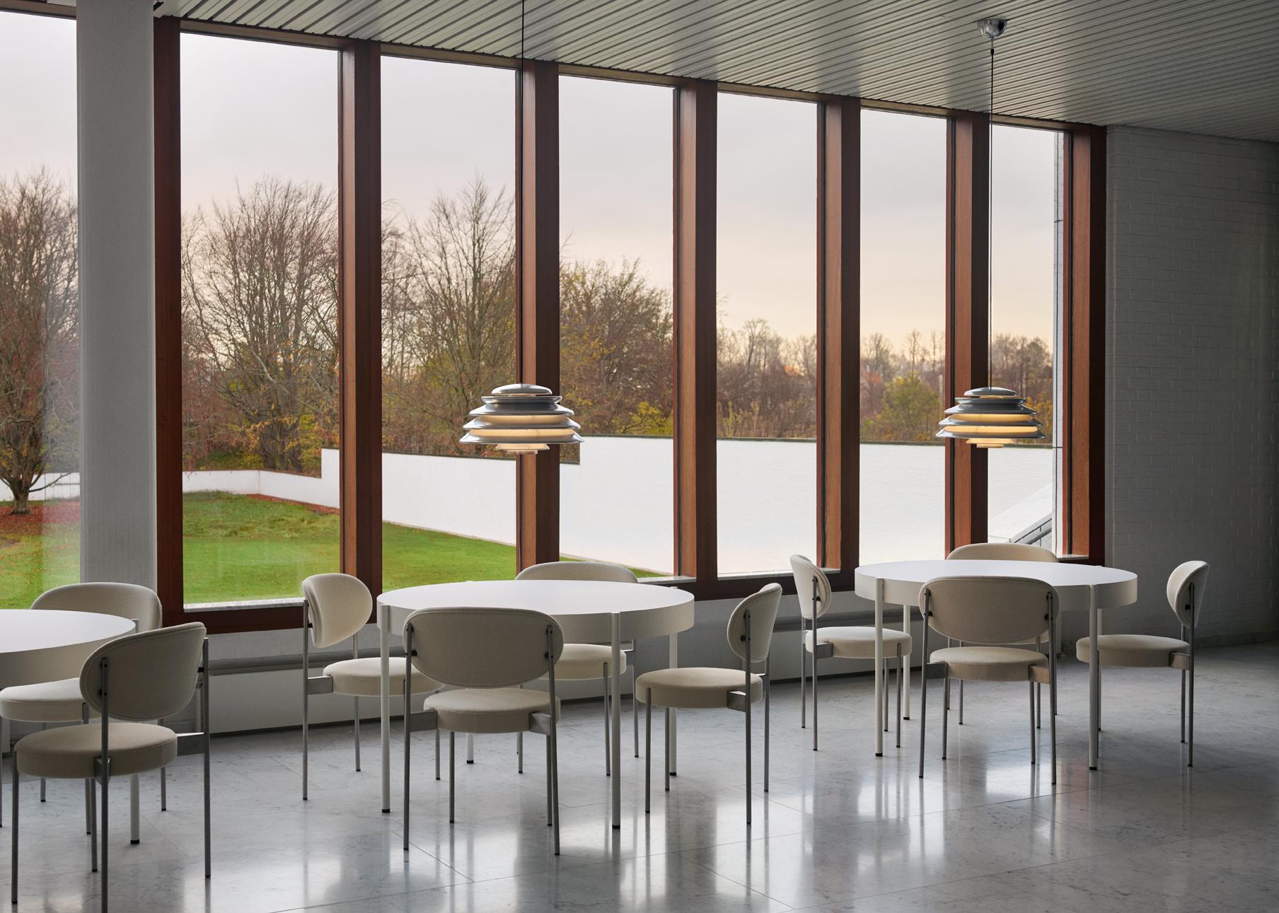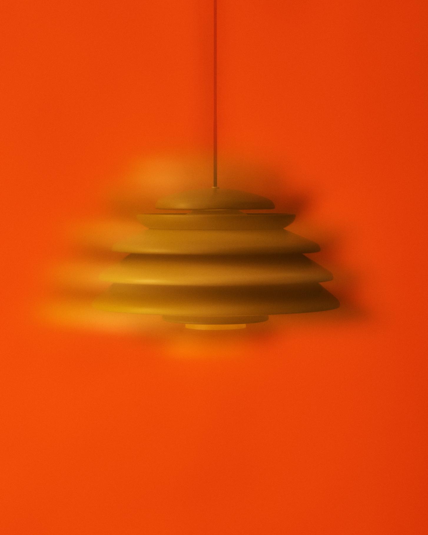 Pendant with direct downward light and layered shades diffusing the light throughout the surroundings. Panton was known for his skillful play with basic geometric forms, figures and systems - often drawing inspiration from organic silhouettes found in nature, and the Hive pendant is no exception. Made from multiple concentric shades of varying size, the layered design of the pendant offers a very characteristic and sculptural quality while ensuring a 100% glare-free light.