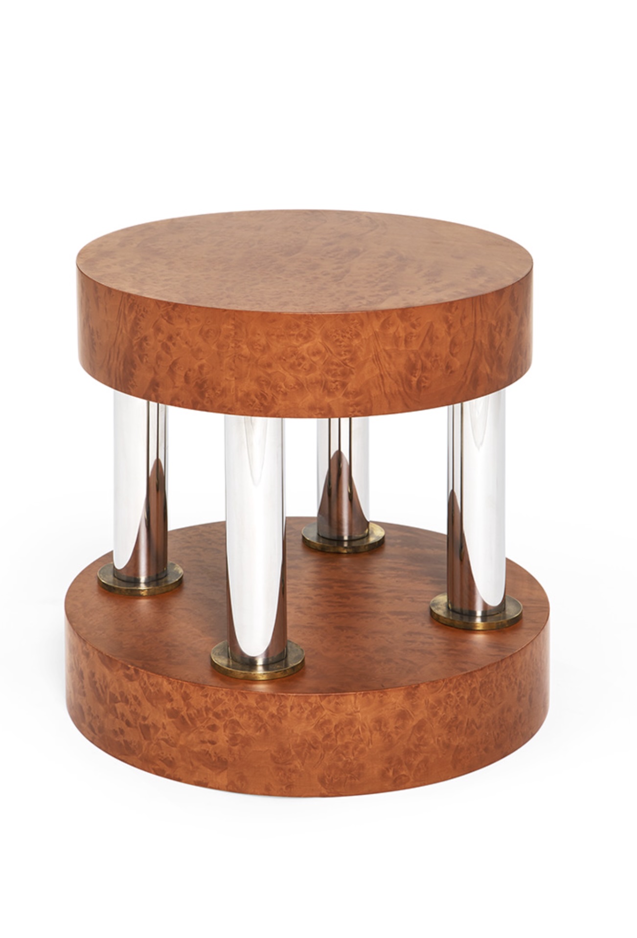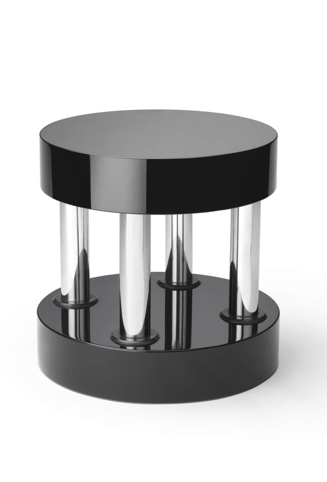 In 1984, Ettore Sottsass designed two versions of Hyatt: one covered in wood veneer, destined for the Memphis catalogue; and one with a painted finish in refined glossy black for the base and top. Originally, this project had a very particular destination: his house in Milan. Today, Memphis rescues and reinterprets this version, adding it to its catalogue.