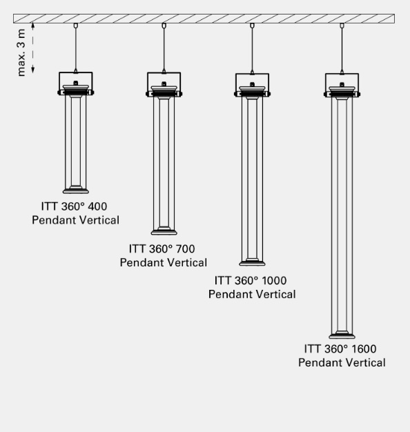 In the Tube 360° (ITT 360°). The light source (LED on aluminium profile) renders 360° on 100 % on the tube’s length. ITT 360° can be used without or with a brass or silver mesh.