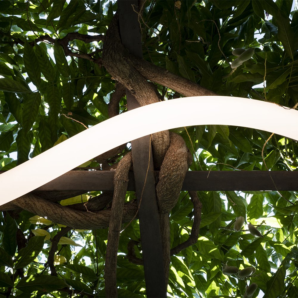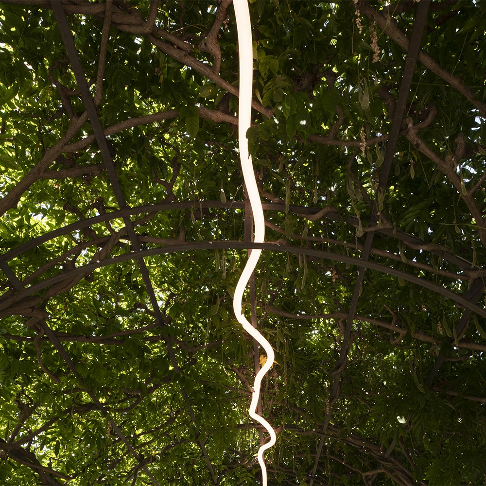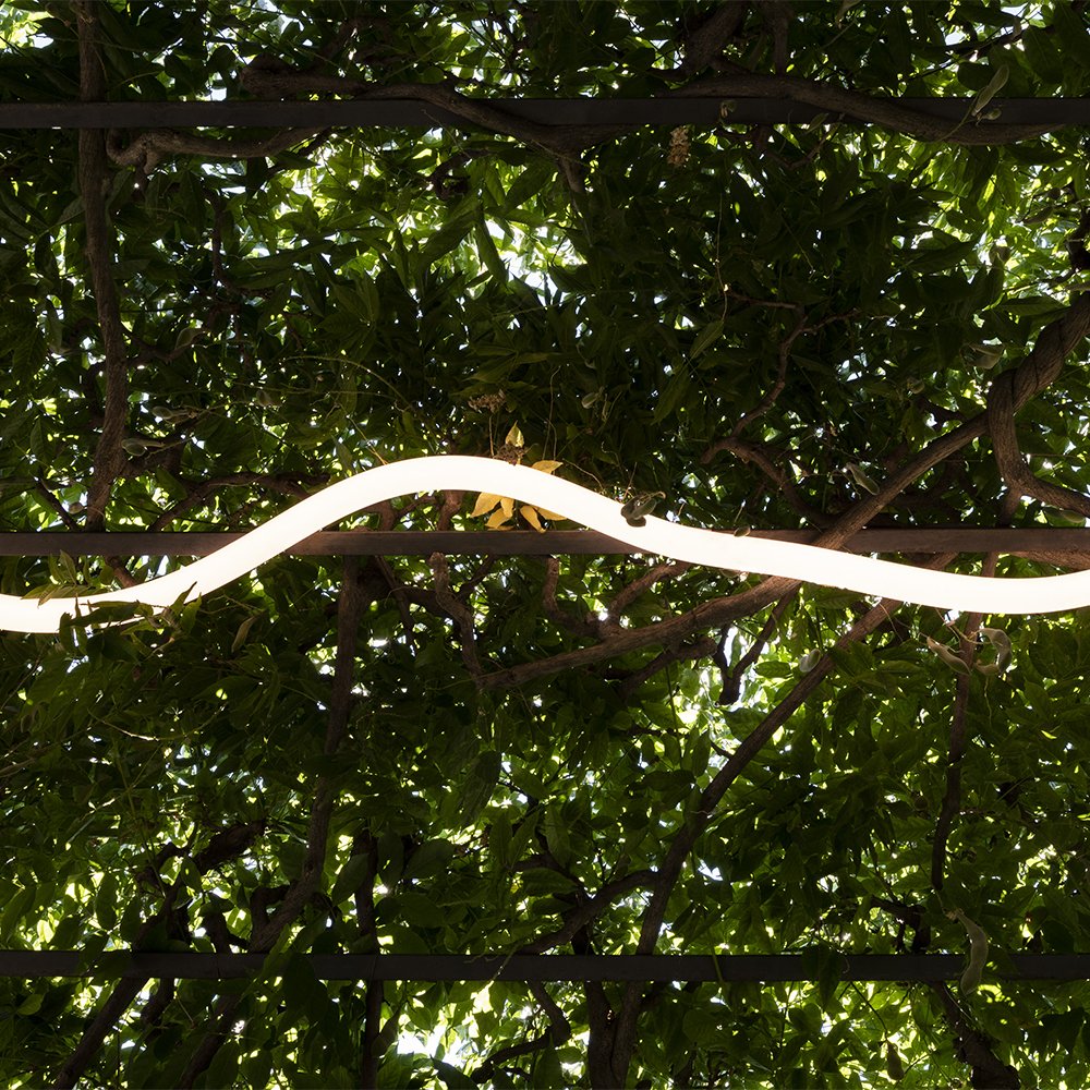 La Linea Flexible Wall/Ceiling Light. Designed by Bjarke Ingels Group(BIG) for Artemide. La Linea is a highly flexible tube of light that can be installed indoors and outdoors. It enables countless applications in various locations with fixing elements concealed inside its section. La Linea leverages an unprecedented combination of factors, including quality of light, IP protection grade, flexibility, and modularity.
