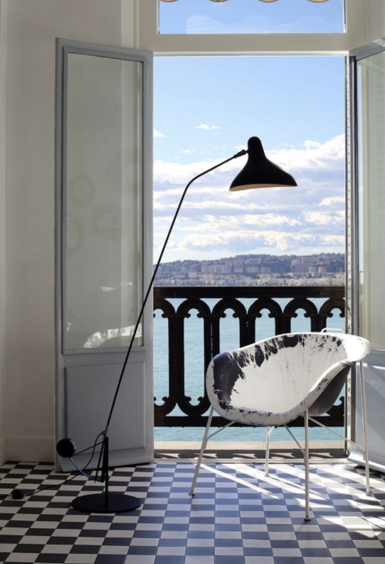 As admirer of Alexander Calder, in 1951 Schottlander created the MANTIS series of lamps. Movement is intrinsic to all of Schottlander’s work : an artist, an engineer and in no small measure a handyman, he devised a clever system of counterweights combined with a series of strong and flexible metal bars. The shade also is unique of its kind. Like an acrobat suspended in midair, it is made from aluminium using spinning and chasing techniques that are a part of the metalworker’s inventory of skills, but to which he has brought his sculptor’s eye to create a helical movement.