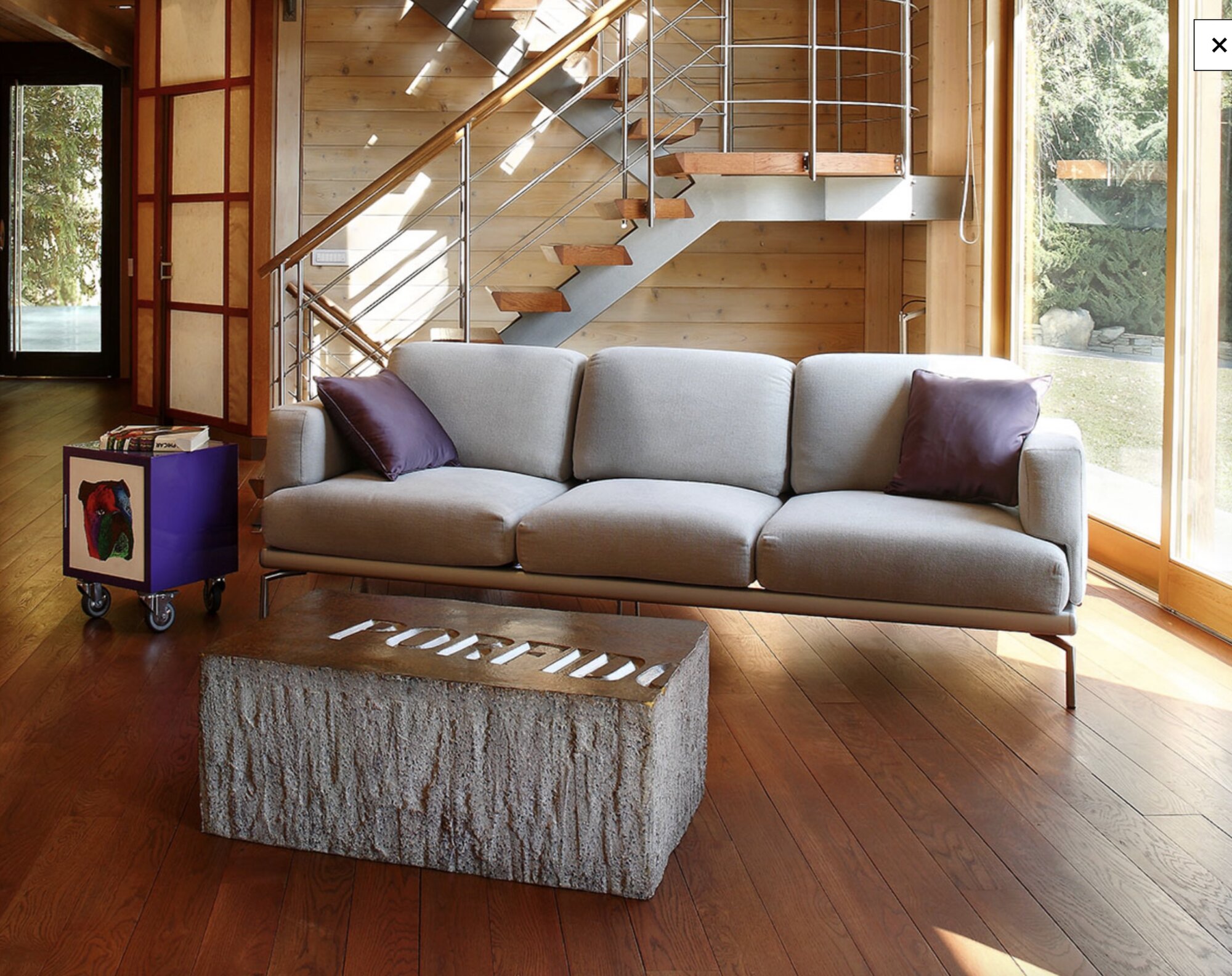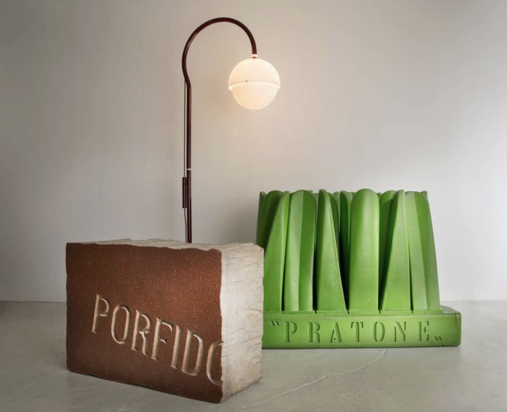 Designed by Piero Gilardi, this piece embraces Gufram's true-fake' ethos, crafting the illusion of a heavy stone block from unexpectedly light materials. The labor intensive creation process involves meticulous hewing and layering of paint, resulting in a unique, alluring texture and shine, amplified by Gufram's Guflac® coating. The paradox is further deepened by the "PORFIDO" label on the surface, a playful nod to the material MASSOLO imitates but does not contain.
