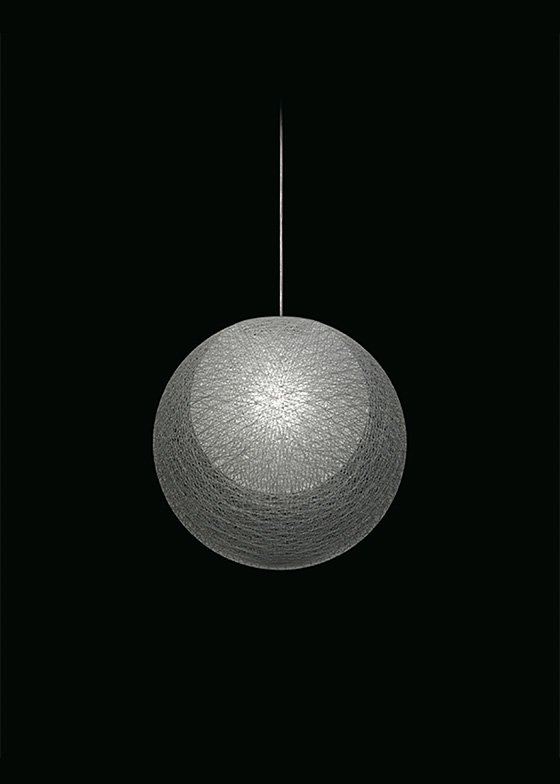 The spun thread design is reminiscent of a cocoon and gives off a soft light that is enhanced by the double and triple shelters of this delicate, fiberglass creation. This is designed by world-renowned Japanese architect, Toyo Ito. MAYUHANA is not only a symbol of YAMAGIWA but also has been highly respected as a representative of all the decorative lightings in the world. The soft light that evokes traditional Japanese paper lanterns known as Bonbori from the dual or triple shades brings airy elegance. Similar to how a thread is spun off a cocoon, MAYUHANA is made by reeling string around a mold. Each one is handmade by Japanese craftsmanship and skill, and none of their shades are the exact same. Though the motif is a Japanese traditional craft, MAYUHANA is composed of modern materials, and it widely integrates with both Japanese and Western-style rooms. It provides a warm glow above a dining table and dynamic installation in high ceiling rooms.