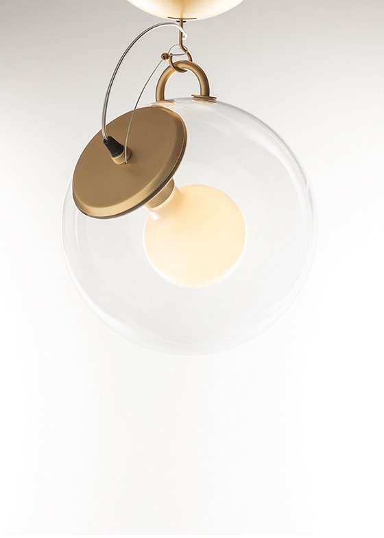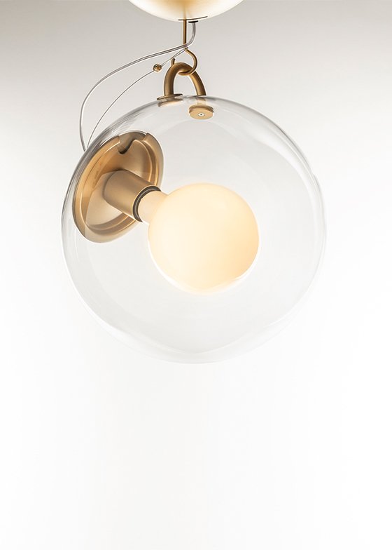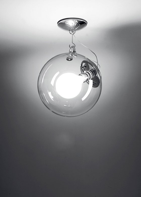 A hand-blown glass globe of light on a base and stem of polished chrome. Transparent yet created a softly diffused, dimmable light. A design statement, the Miconos fixture is designed to complement either modern or more traditional interiors. Its naked design perfected with polished precision makes it a conversation piece of contemporary art. A new gold color is now available for the wall, ceiling and suspension applications . The color options give the user a wide range of possibilities to help match the décor of any interior.