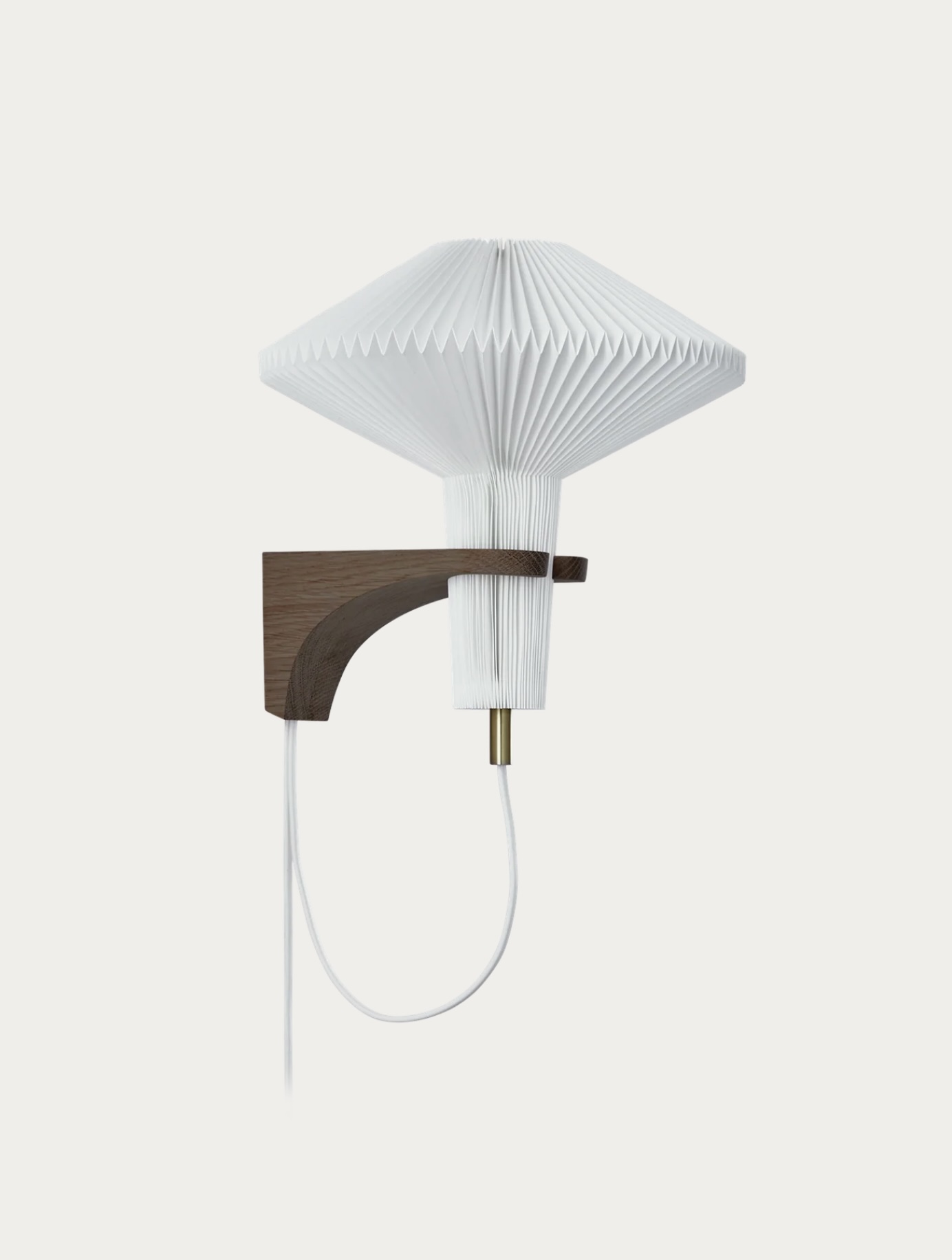 The lamp is a wall lamp with a base in untreated light oak or smoked oak. The pleated shade is handmade by our pleating technicians in Odense. Naturally, it is the shape of the lamp that inspired the name of the lamp.