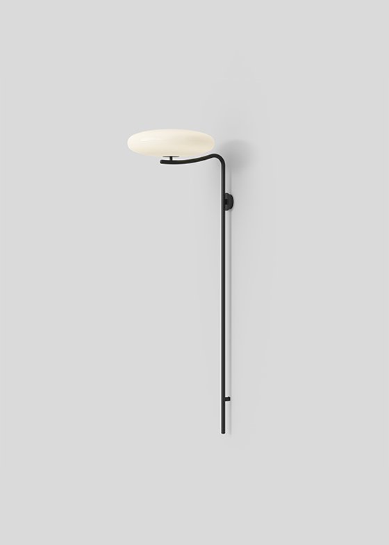 A timeless masterpiece of lightness and elegance, Model 2065 Wall is the result of Gino Sarfatti’s desire to experiment with materials. Gino Sarfatti came across methacrylate samples between 1949 and 1950. This convinced him to create a suspension lamp, the Model 2065, with this plastic polymer which is much lighter and more resistant than glass. The Model 2065 Wall added to this the extraordinary capacity to re-write the formal status quo for its category: with the cables fitting inside its tube, it was stuck to the wall yet also nomadic and required no architectural or electrical intervention. The Model 2065 Wall consists of a diffuser made up of two opalescent plates joined and perched upon a long and elegantly curved black painted steel tubular structure. A simple design played on the elliptical shape and the lightness of the materials which, together, seem to give life to a weightless creation. Five E14 LED bulbs provide illumination in all versions of the lamp. In terms of sustainability: the diffusers are made of Green Cast®, a 100% recycled and recyclable PMMA (polymethyl methacrylate) — patented and made in Italy — that has exactly the same aesthetic and functional quality of original methacrylate.
