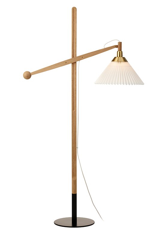 This classic masterpiece in light oak was designed by Vilhelm Wohlert as early as 1957. The transverse piece can be adjusted in height. The angle and the lamp head can be tilted which makes this the ideal reading lamp.