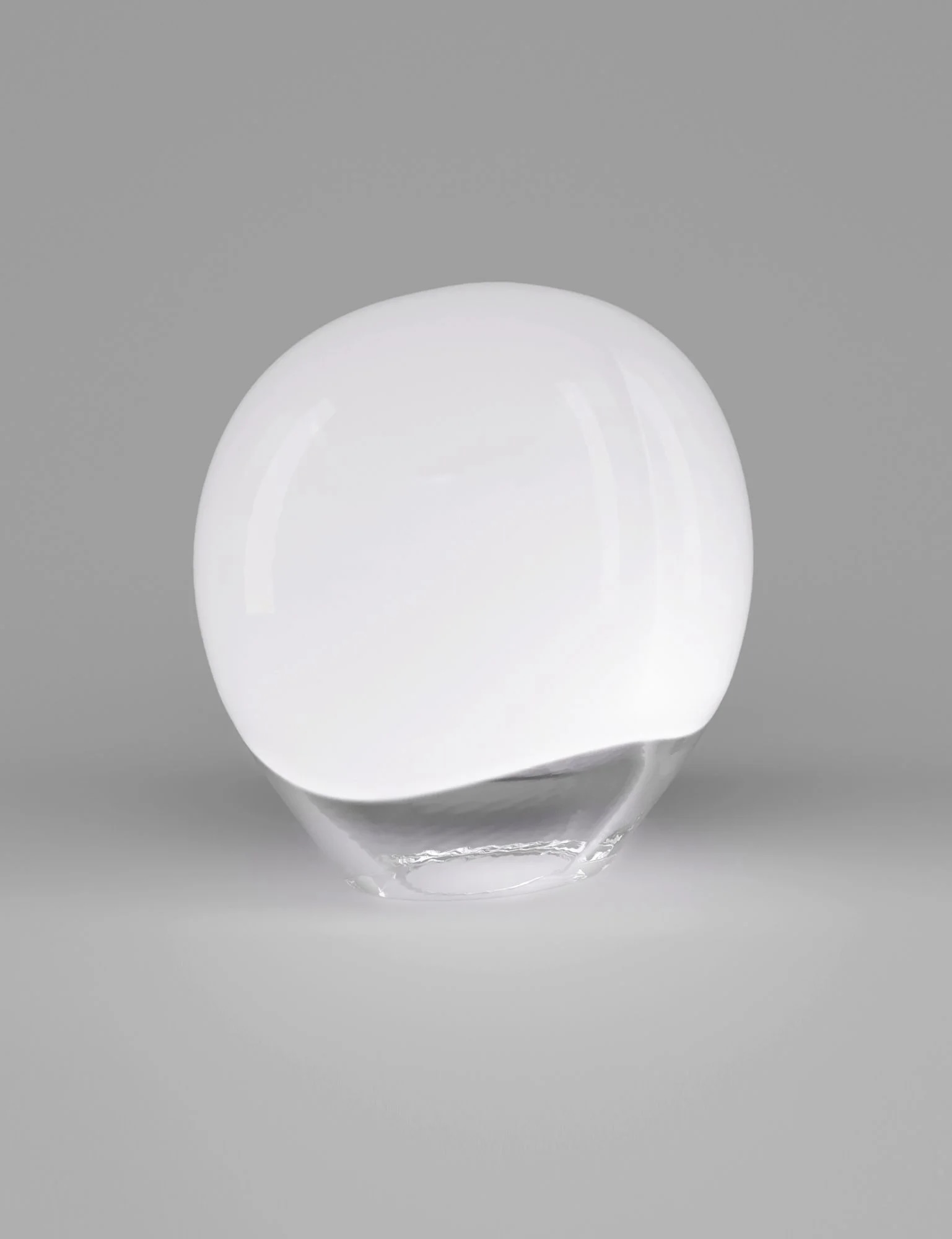 A freehand made table lamp that goes beyond functionality. The bottom transparent band makes the most of the light source, while the upper white band