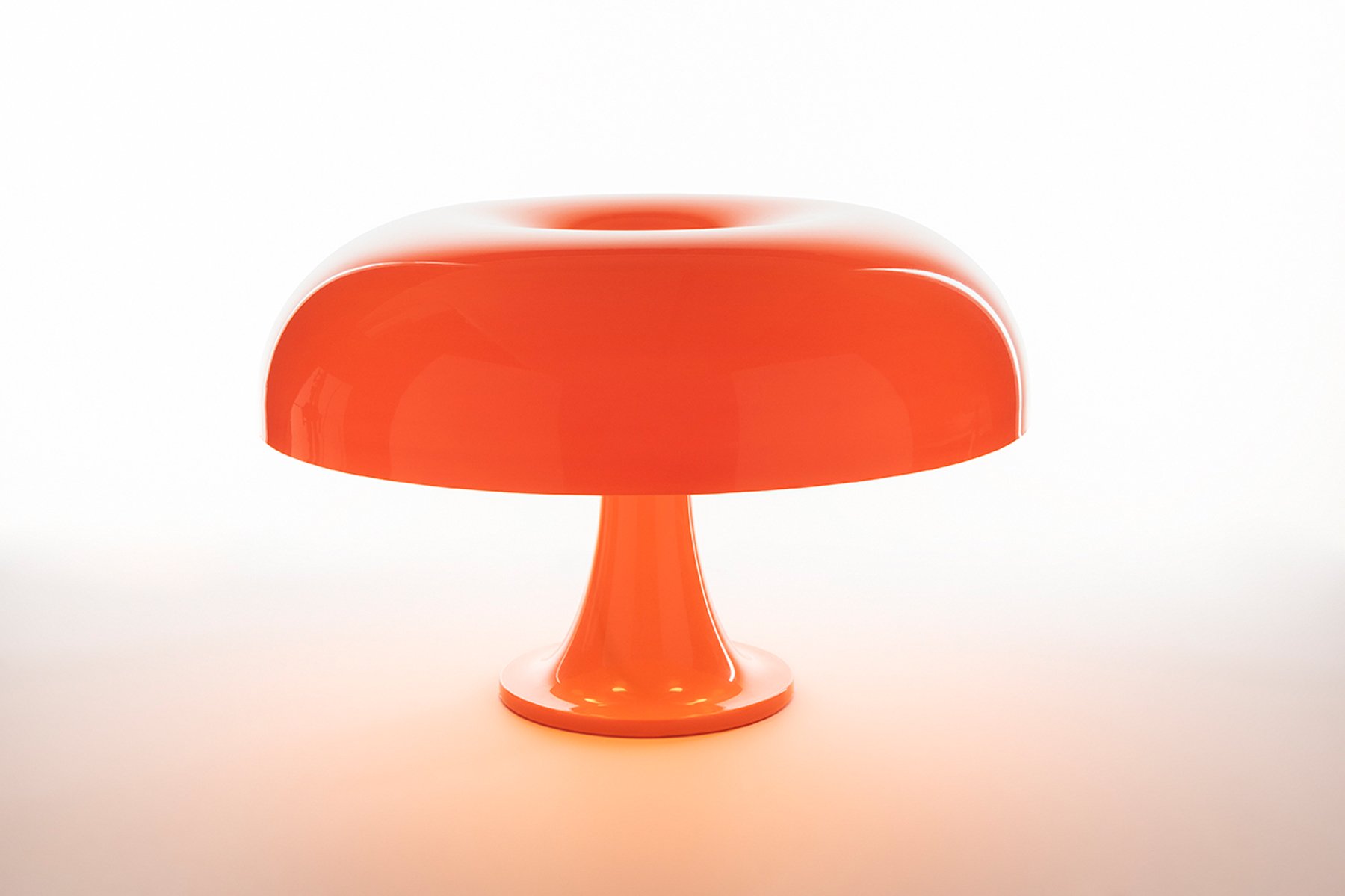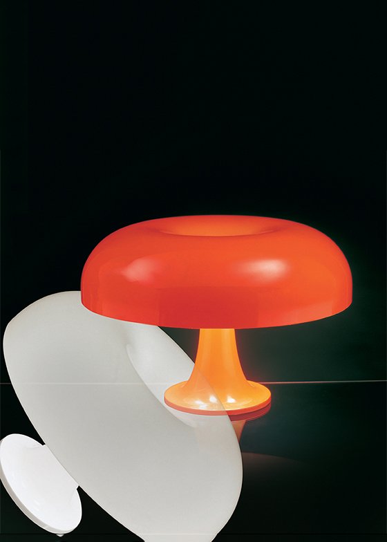 Nesso Table Lamp by Artemide. Designed by Giancarlo Mattioli and Gruppo Architetti Urbanisti Città Nuova, in the glamorous 60’s era, Nesso is an international icon of futuristic, democratic design. Part of the “Modern Classics” reissued line, it was a marvel of ABS thermoplastic injection-molding when first introduced in 1967 thus bringing industrial materials and methods to the home and office environments. A dash of color and a design inspired from nature, Nesso stems from the visionary identity of Artemide. Its’ iconic curves wind into a true collectible, an expressive statement piece of internationally acclaimed calibre and fame. An iconic piece having staged its presence in various landmarks, Nesso is considered a valuable piece of art. An “icon” of design, part of the permanent collections of The Metropolitan Museum of Art and The Museum of Modern Art.