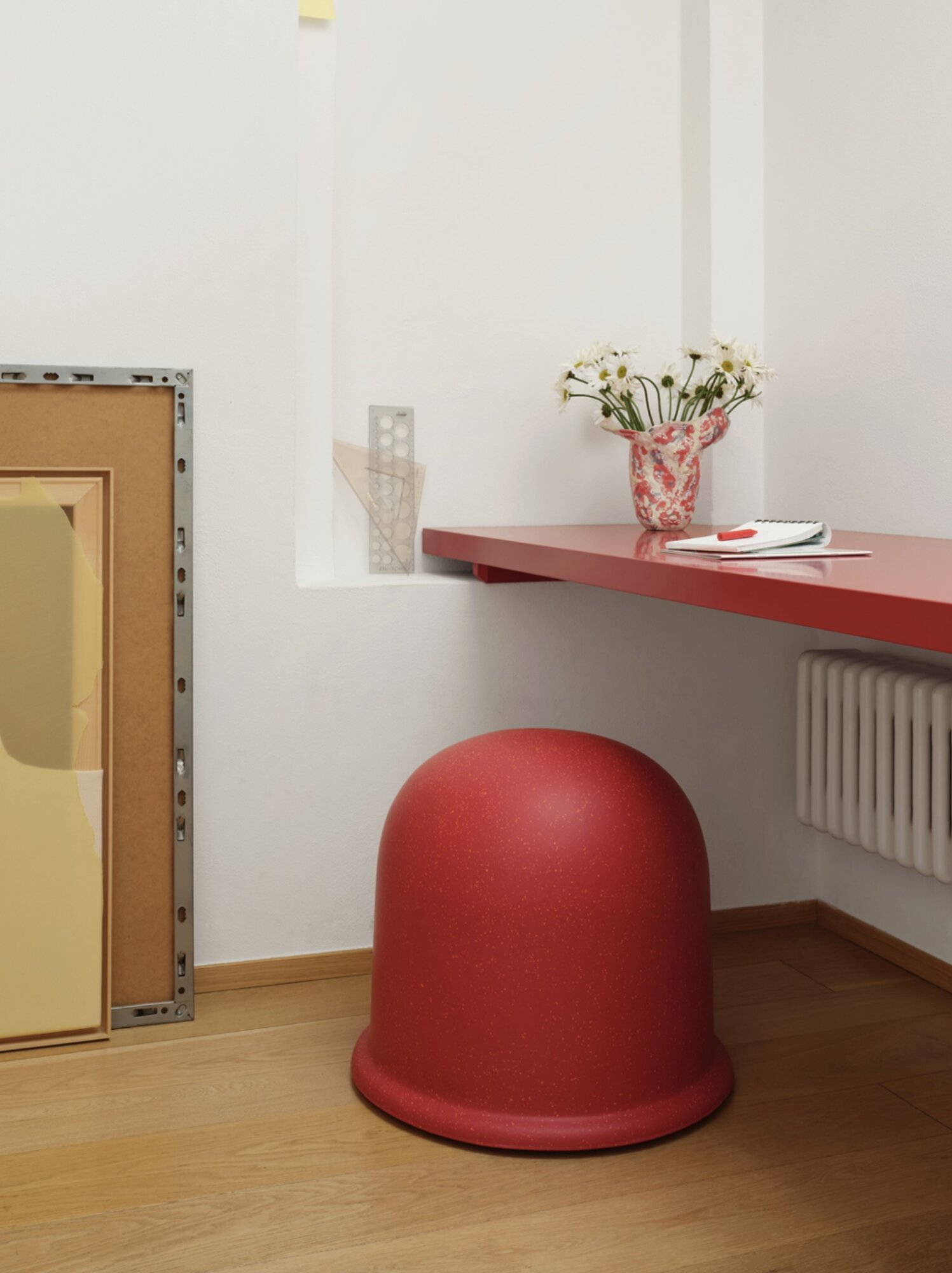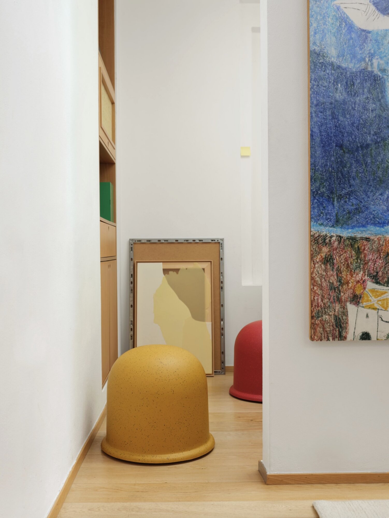 Originally dsigned in 1968 by Giorgio Ceretti, Pietro Derossi and Riccardo Rosso, Puffo was presented for the first time at the 14th International Exhibition of the Triennale di Milano. Inspired by the famous traffic-blocking "panettone" typical of Milanese urban planning, Puffo renews the short circuit typical of Gufram domestic sculptures that are made of soft polyurethane.