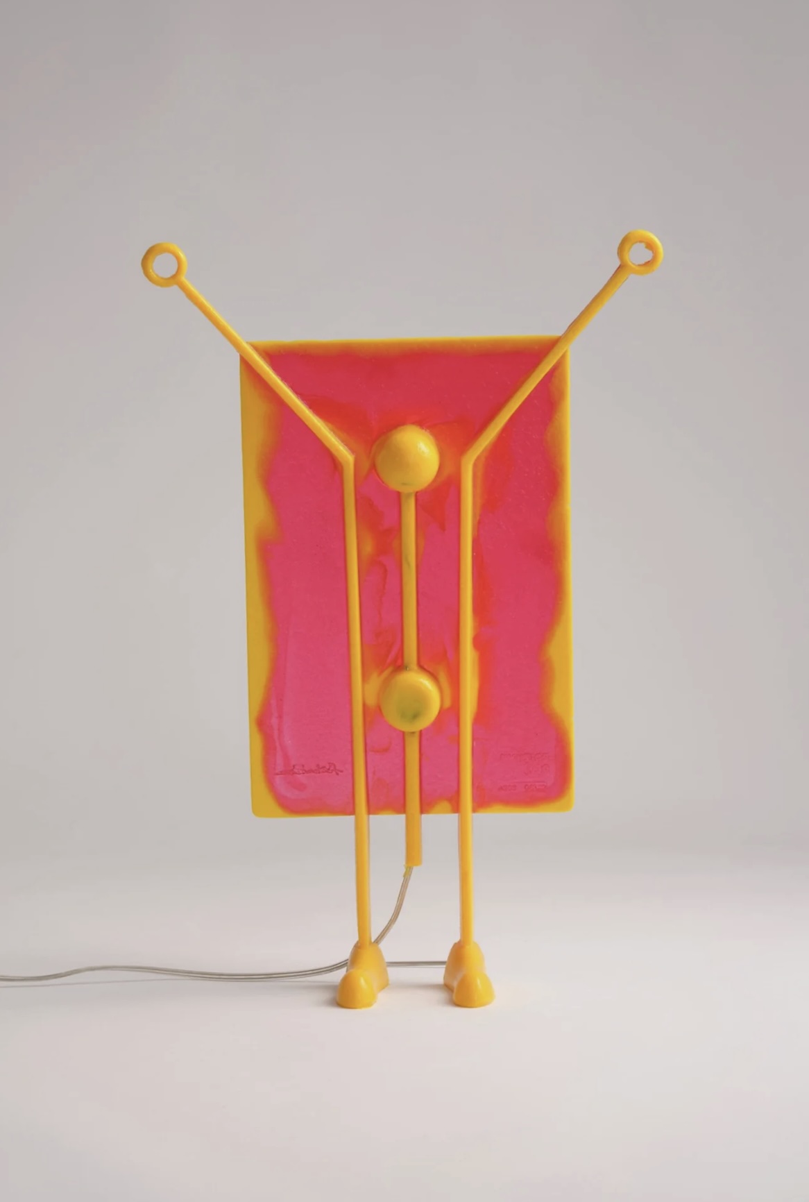All the poetics of Gaetano Pesce are sacred and profane: Salvatore, the luminous object with the shape of a man standing upright, with his arms open and facing up, is a witness. This evocative pose characterizes Salvatore and gives him a particular balance between monumentality and irony.