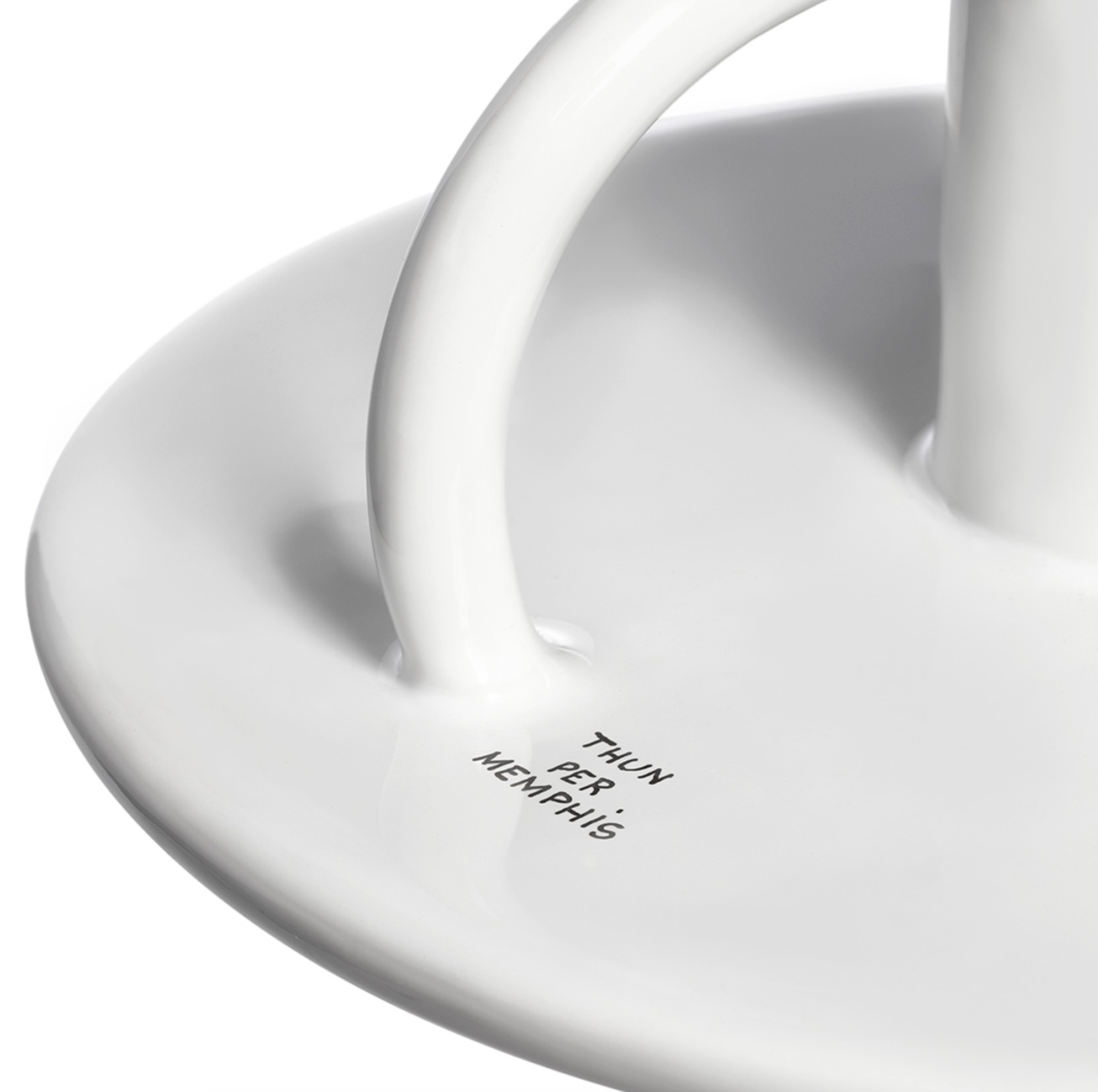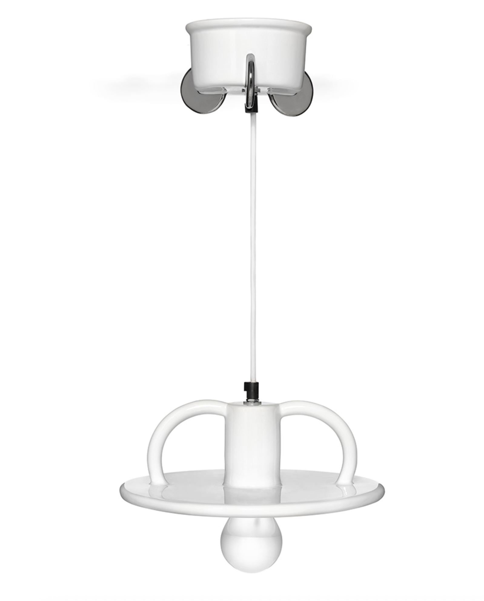 Simple, white, linear. These are three words that best describe the Santa Monica lamp by Matteo Thun. A pendant light consisting of a lampshade and a ceiling rose in white enameled porcelain. Circular decorative elements are positioned above the lampshade, bringing this simple structure to life.