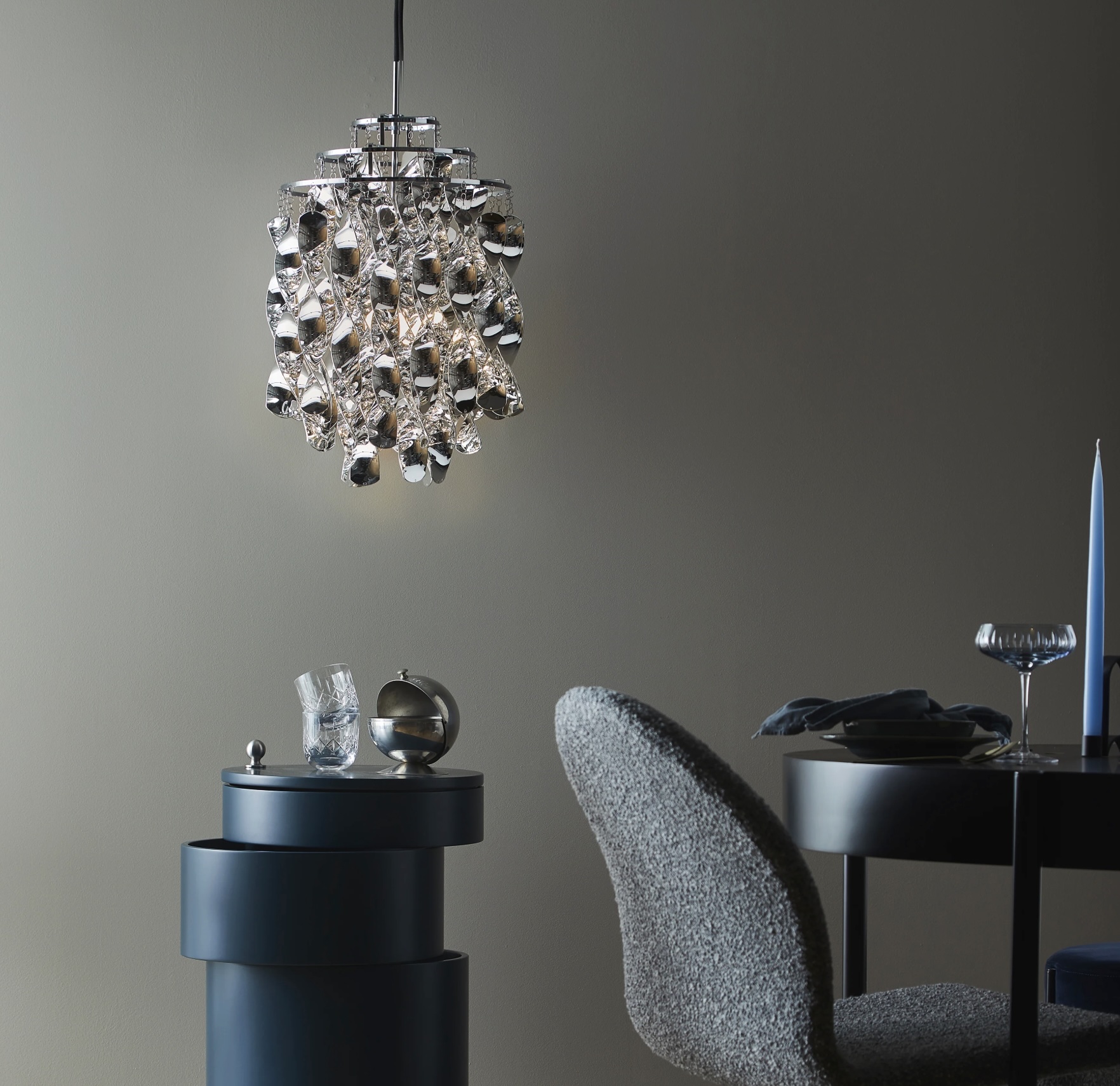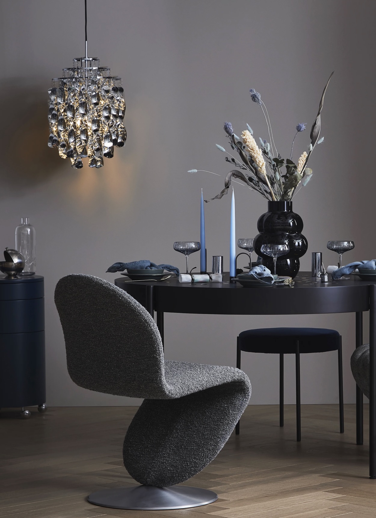 The Spiral collection is not only a great example of Panton’s experimental approach to colours and shapes, but also a study in how an object can interact with its surroundings through reflection, sound and movement.