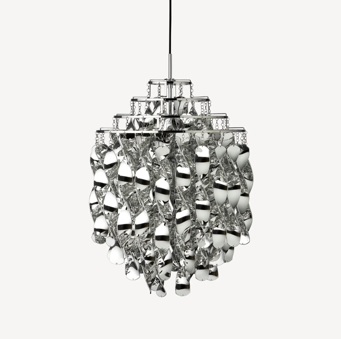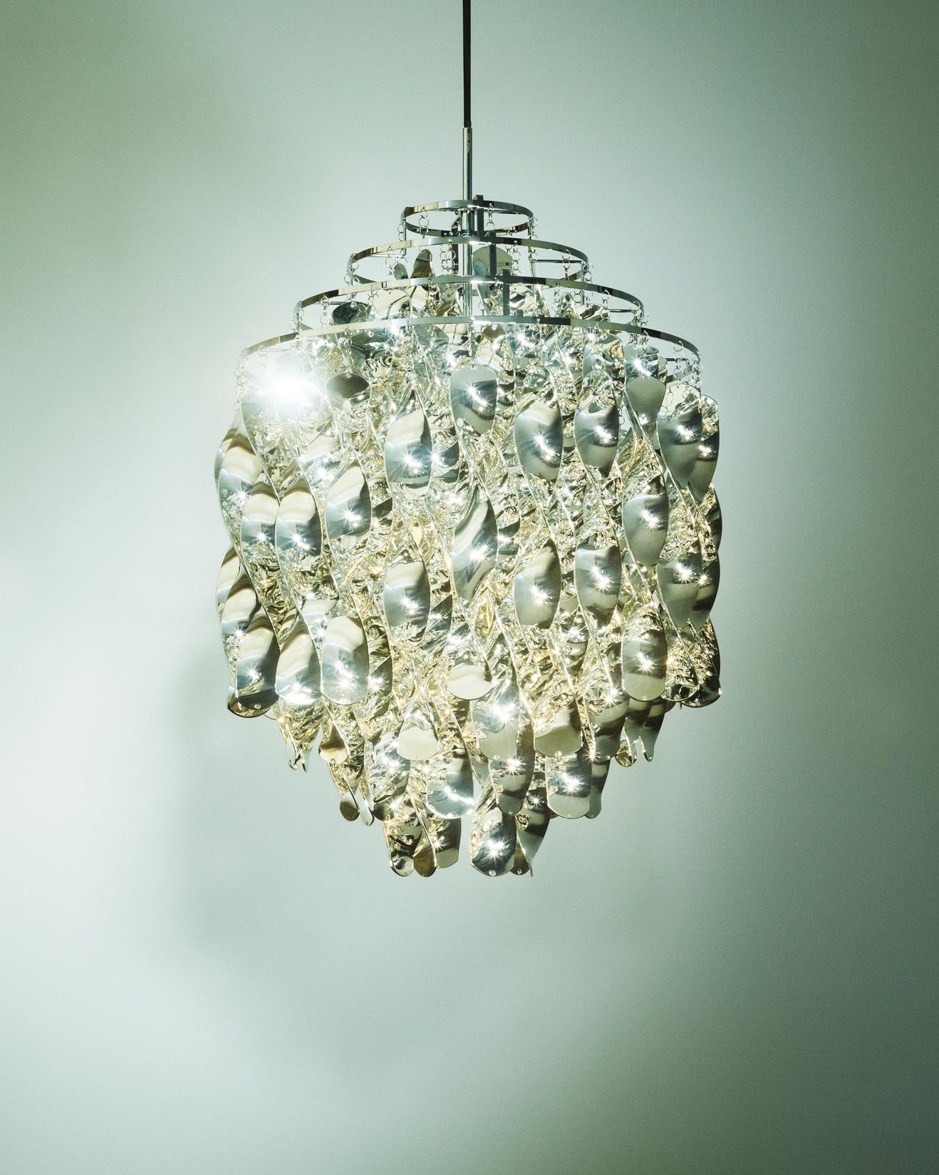 The Spiral collection is not only a great example of Panton’s experimental approach to colours and shapes, but also a study in how an object can interact with its surroundings through reflection, sound and movement.