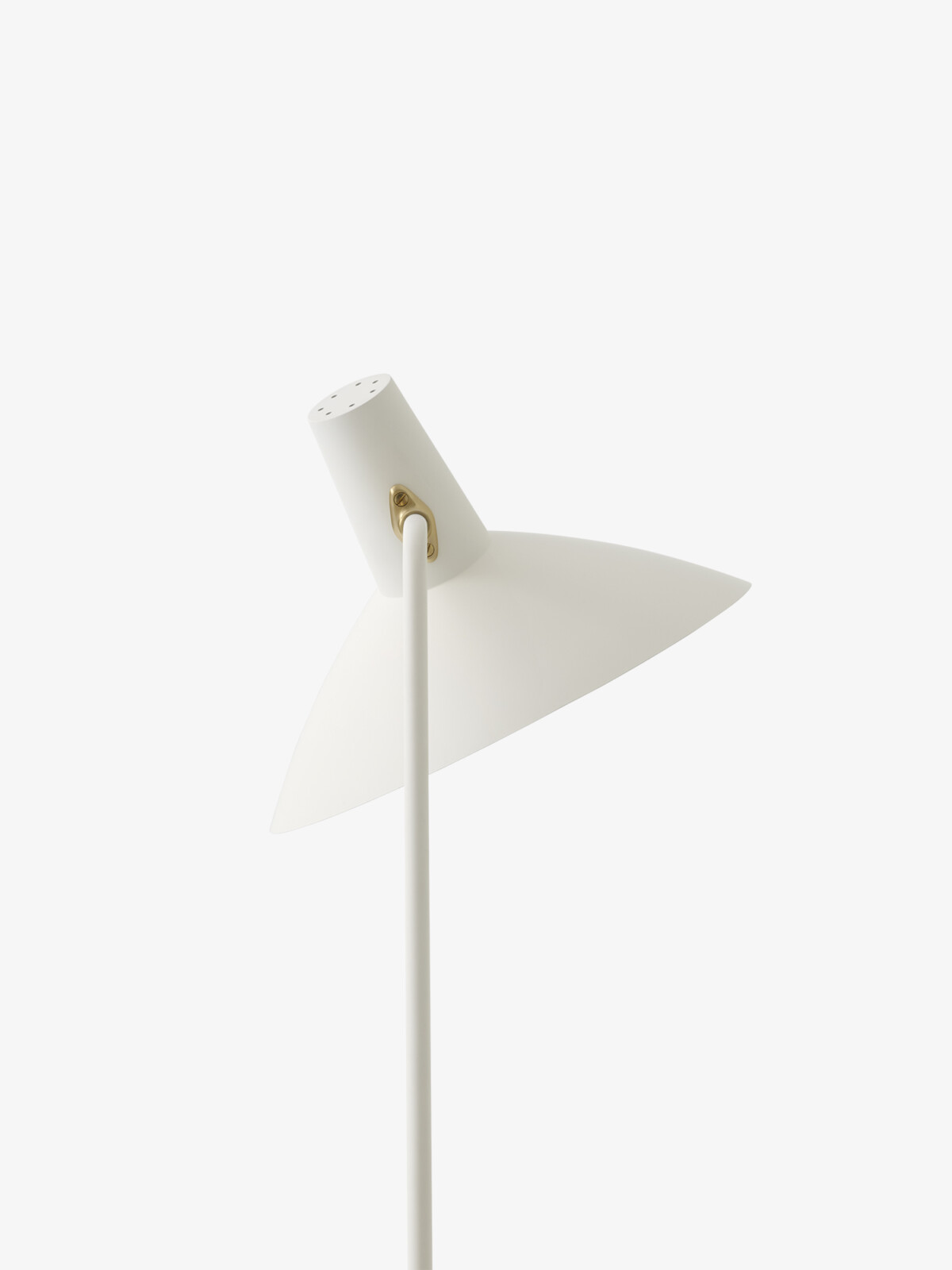 Tripod from 1953 reflects the clean minimalism of Old Masters Hvidt & Mølgaard. A floor lamp built from lacquered steel with brass details, it strikes a delicate balance between the stark simplicity of its design and the softness injected by the curved edges of its base. Although it was designed in 1953, this is the first time it’s in production. Now available in two contemporary colors: Black and White.