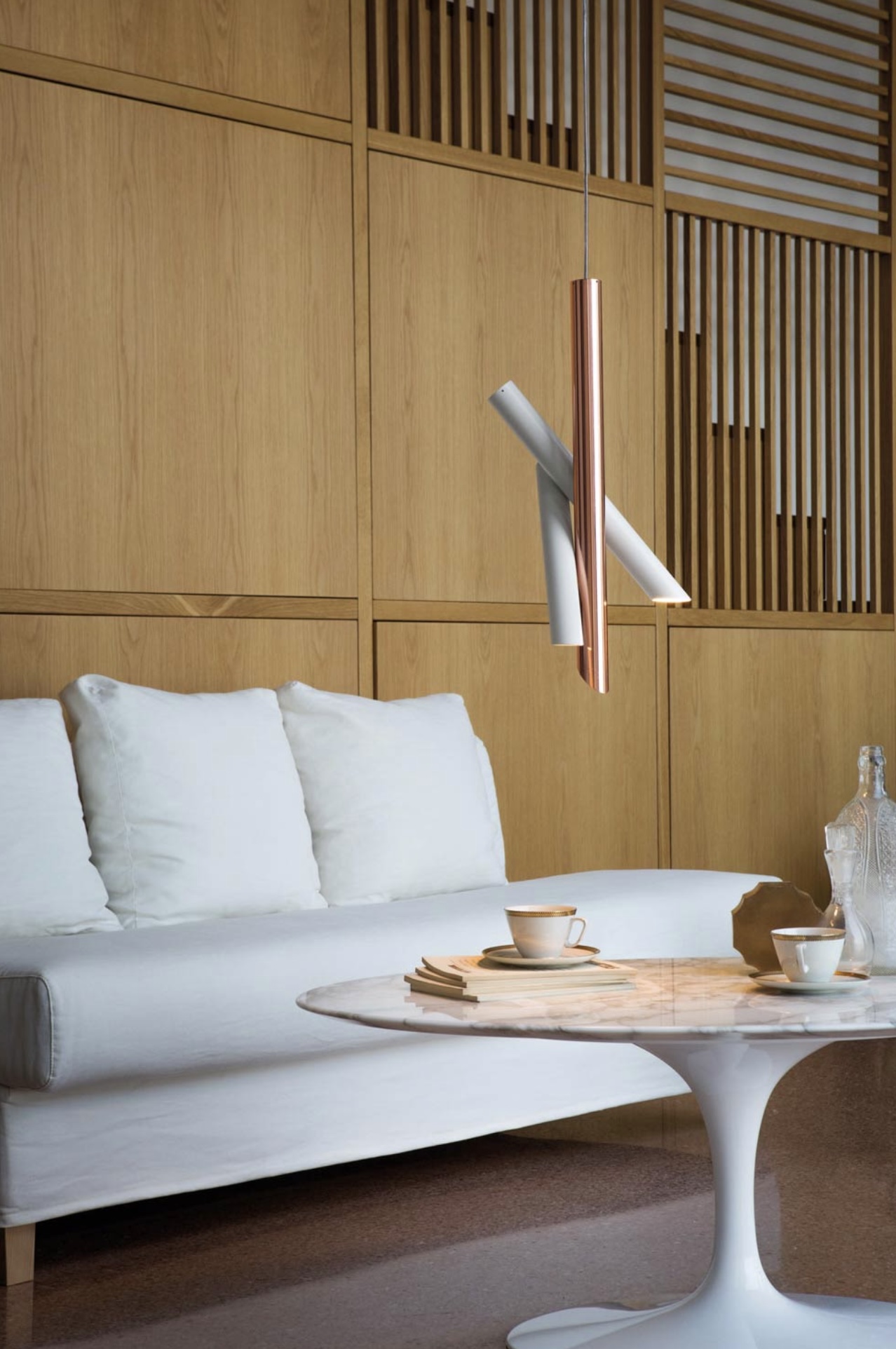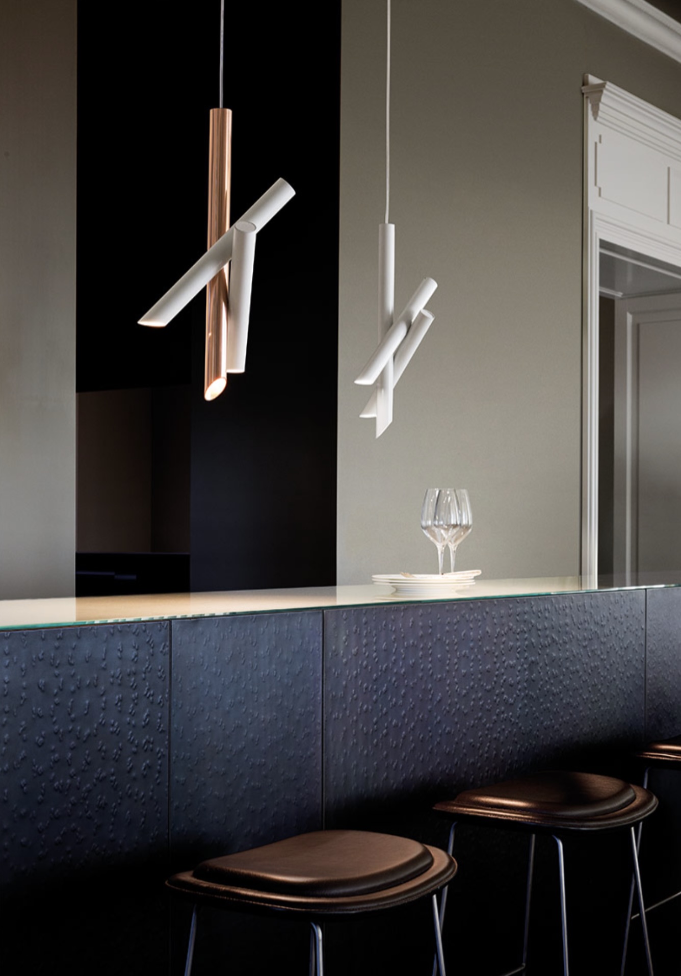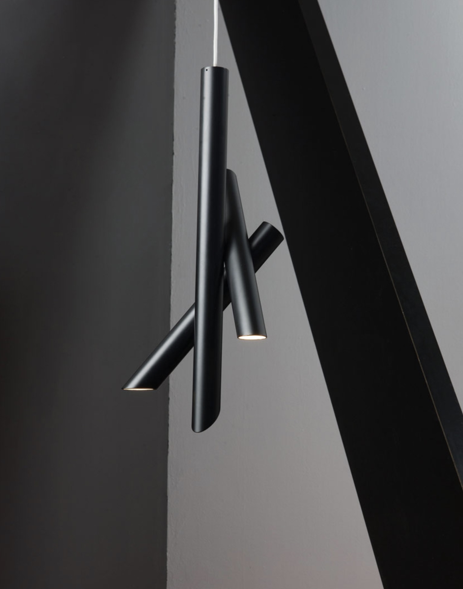 Clean, linear and essential design expressed by the pure shapes of the tubular elements. Tubes is available in pendant, wall and ceiling versions. With a simple movement, the aluminum bodies rotate to redirect the light as desired.