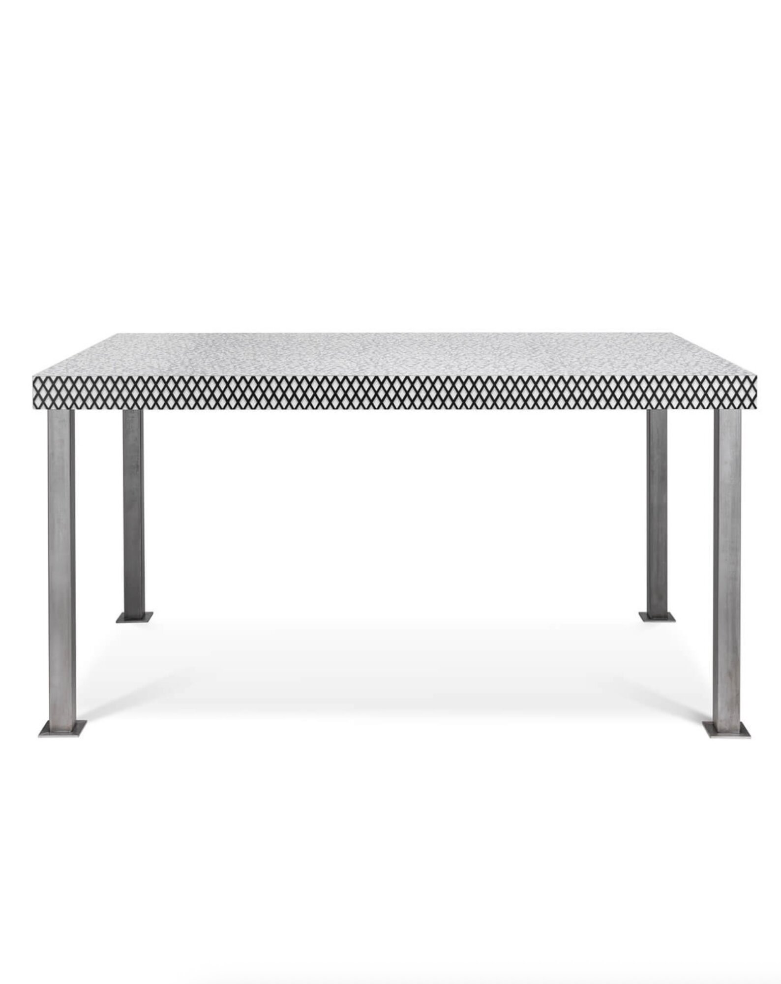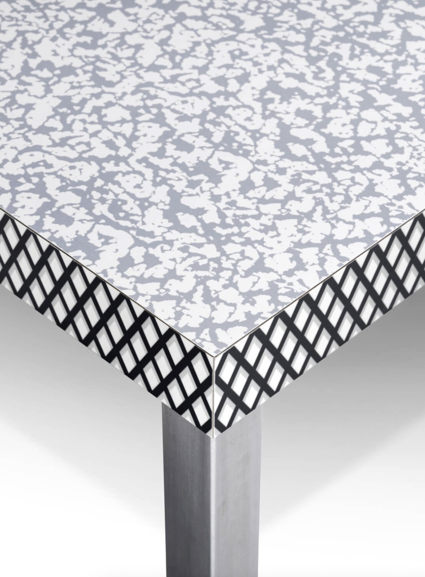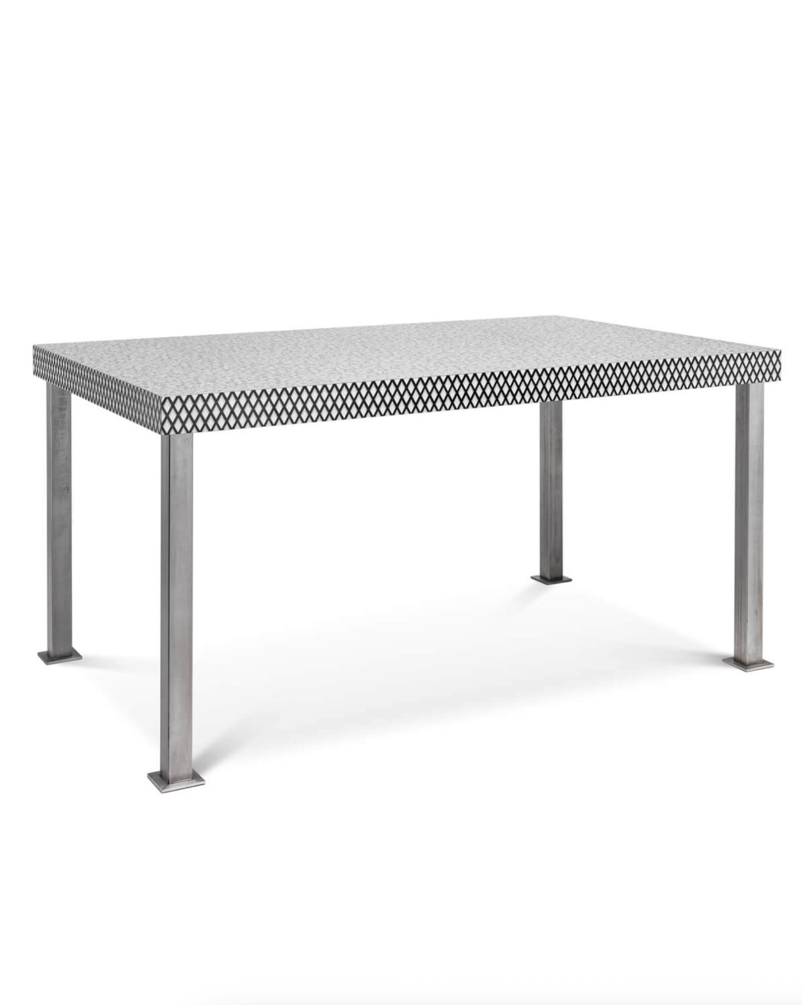 A preparatory sketch for what would become the Venezia table can be found in a collection of Sottsass's drawings dating from 1978 to 1980. A prototype of a different shape and size was part of a group exhibition in Linz in 1980. In the introductory text to these "Formal Exercises," Sottsass himself defines furniture like the Venezia table as similar "to monuments in the squares." According to the author, it is a table that "does not bind," that does not produce coordinated pieces. Narration and decoration have independent force, anticipating the great innovation of Memphis.
