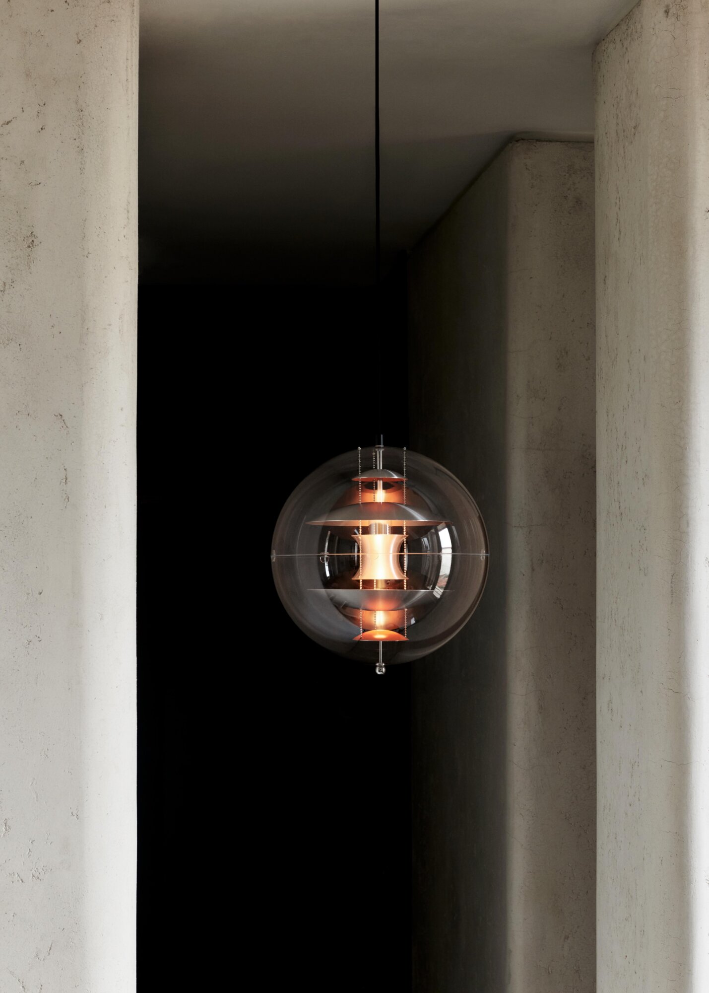Versatile in placement, the VP Globe is ideal above a dining table, in a hallway or long corridor, or as a striking sculptural element in any corner of the home.
