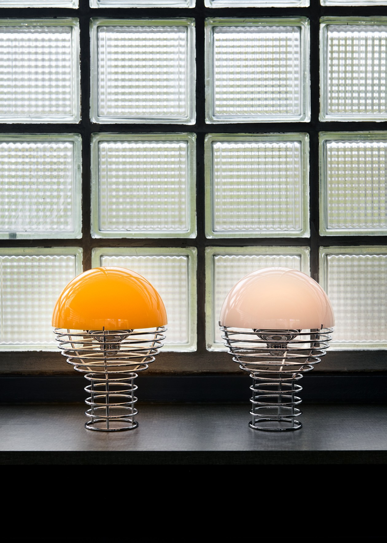 Known for its striking open wire frame and luminous dome-like shade, the Wire Lamp has long stood out among Verner Panton’s lighting design. Designed in 1972, its unique blend of industrial materials and poetic form made it an instant classic.