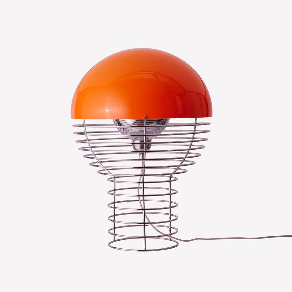 Now available in two sizes, the Wire Table Lamp maintains its iconic industrial look while offering versatility for different spaces. The larger version is available in orange and white, while the smaller version—perfect for an office desk or bedside table—comes in white, yellow, and orange. Each color option adds a bold finishing touch, highlighting the lamp’s sculptural form and signature Panton design DNA.