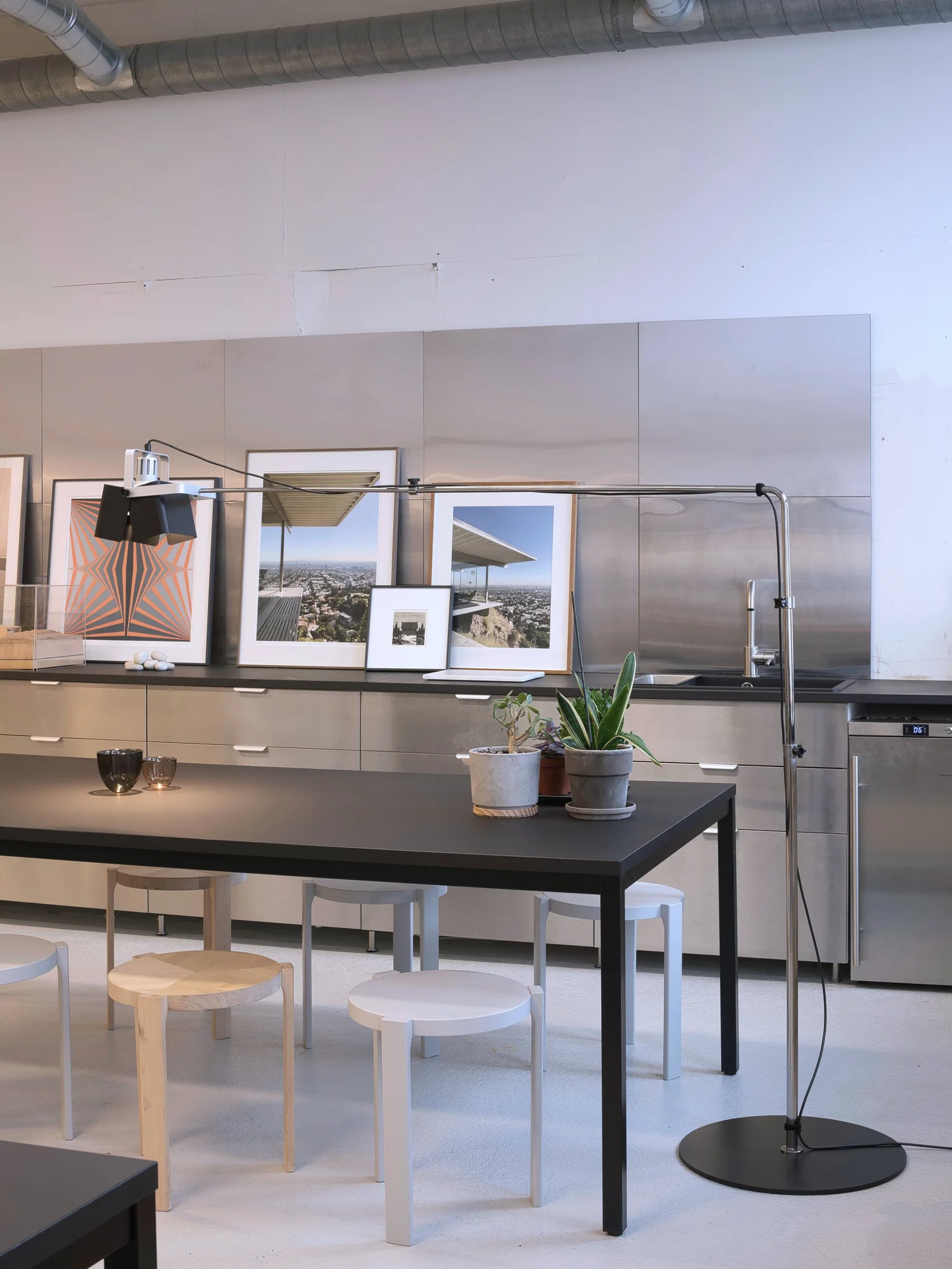 When Yrjö Kukkapuro designed his studio in 1968, he worked with highly experimental materials, forms, and architectural ideas. The vaulted concrete ceiling, which prevented the use of traditional ceiling-mounted fixtures, led directly to the creation of the Luminaire Series 100 – a collection developed to meet the designer’s own lighting needs.