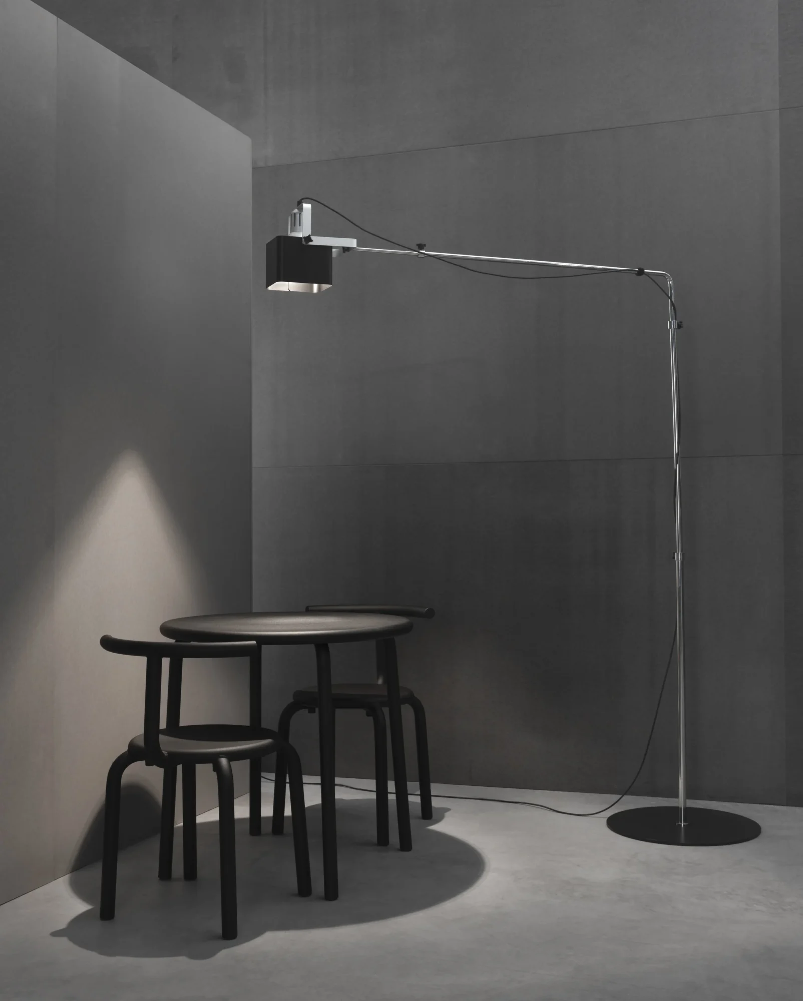 The YK100G is a floor lamp in the Series 100 characterized by its impressive reach. Extending nearly 2 meters upward and outward from the center of its base, it provides a wide lighting span that allows for versatile positioning and effective illumination across a room. Its long, graceful structure not only serves functional needs but also adds a distinctive architectural presence, making the YK100G both a practical lighting tool and a visually expressive design element.